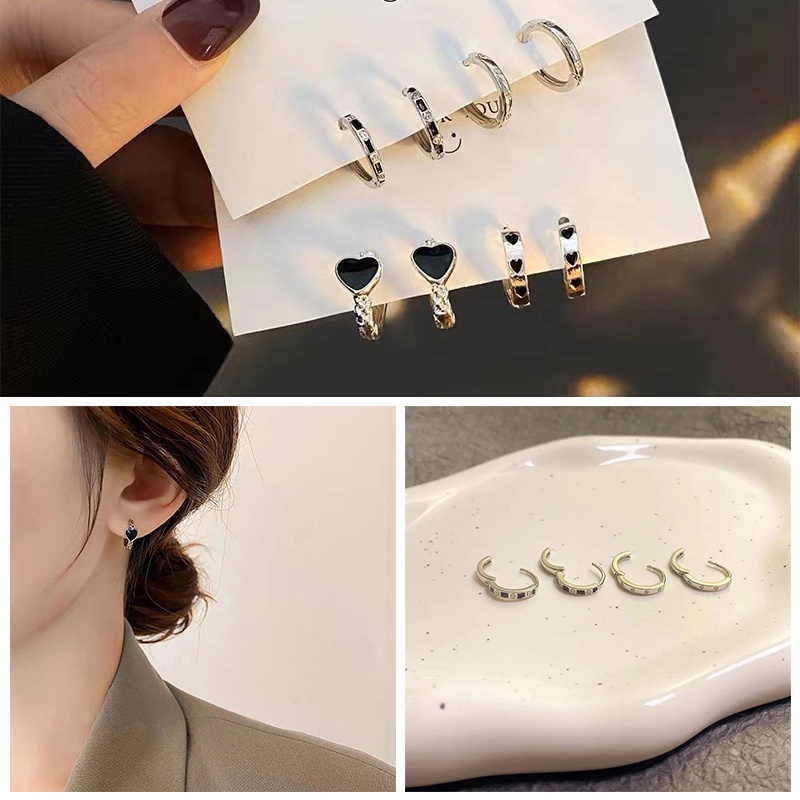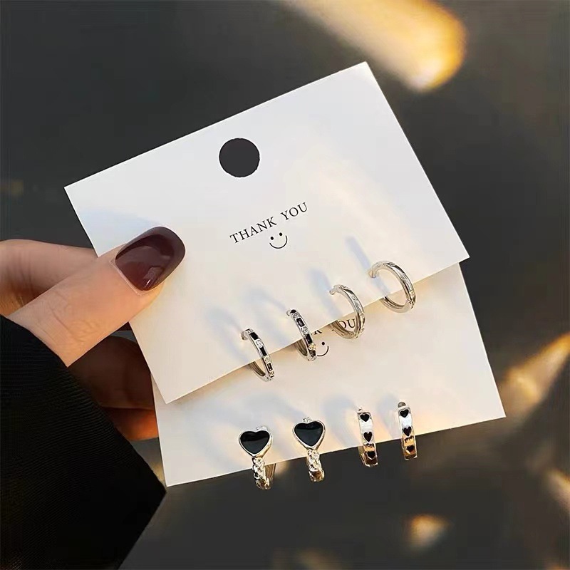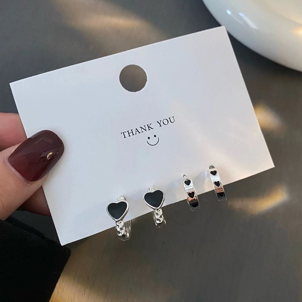 ชุดเครื่องประดับ ต่างหูห่วงโลหะ รูปหัวใจ สีดํา สไตล์พังก์เรโทร สําหรับผู้หญิง