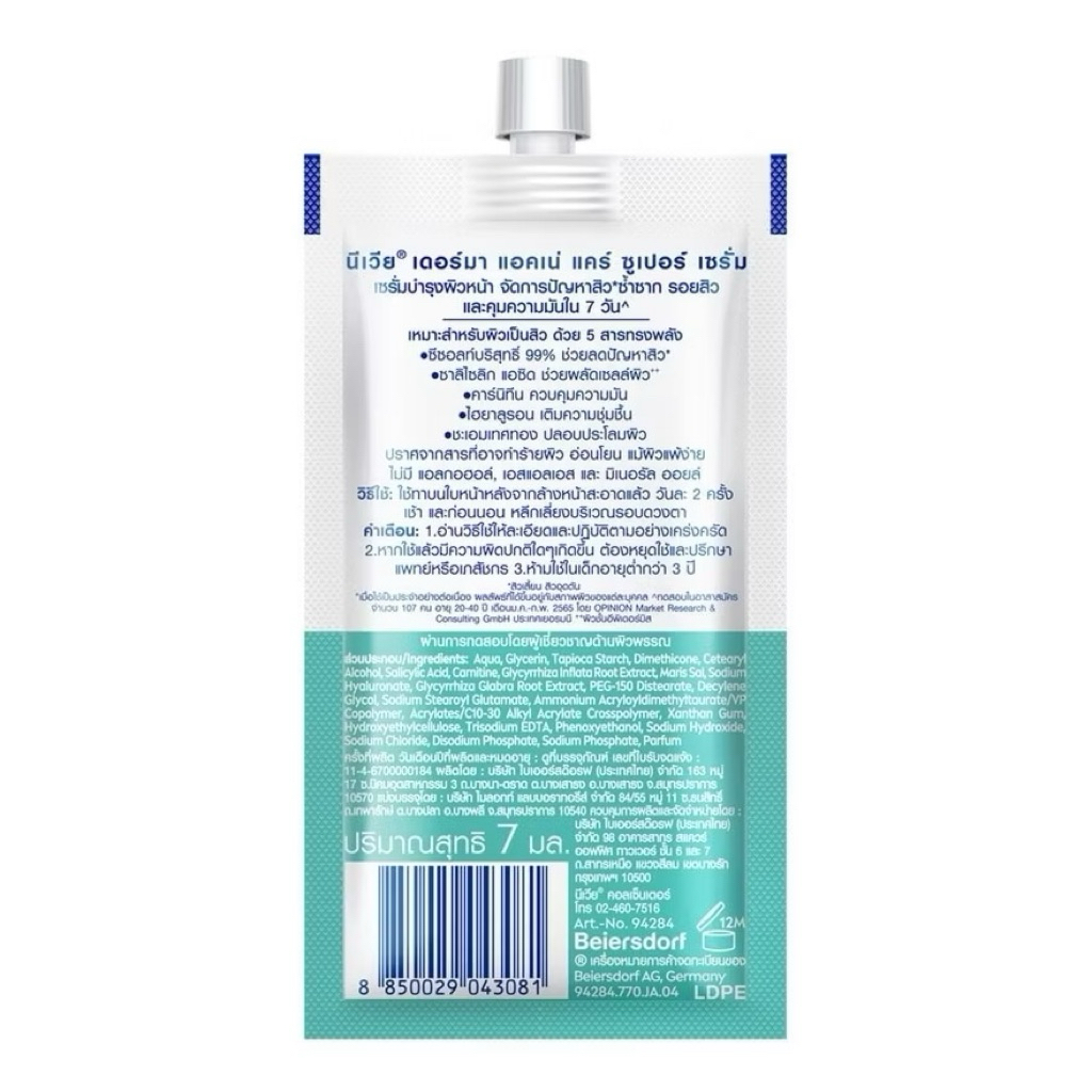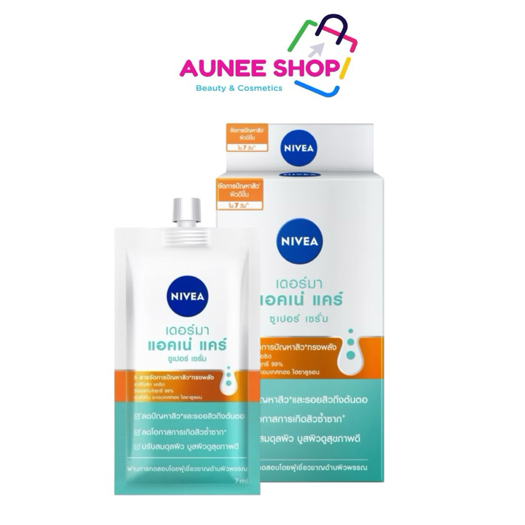 ส่งฟรี/มีไลฟ์ (6ซอง/กล่อง) Nivea Derma Acne Care นีเวีย เดอร์มา แอคเน่ แคร์ ซูเปอร์ เซรั่ม 7 มล [3098]
