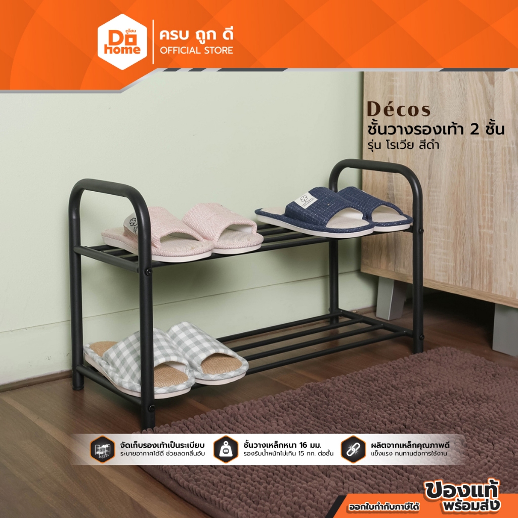 DECOS ชั้นวางรองเท้า 2 ชั้น รุ่น โรเวีย สีดำ [ไม่รวมประกอบ] |LAN|