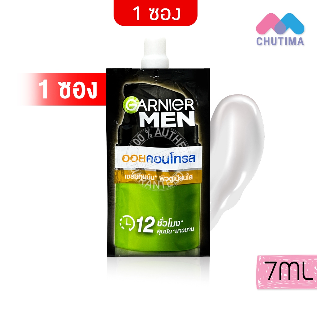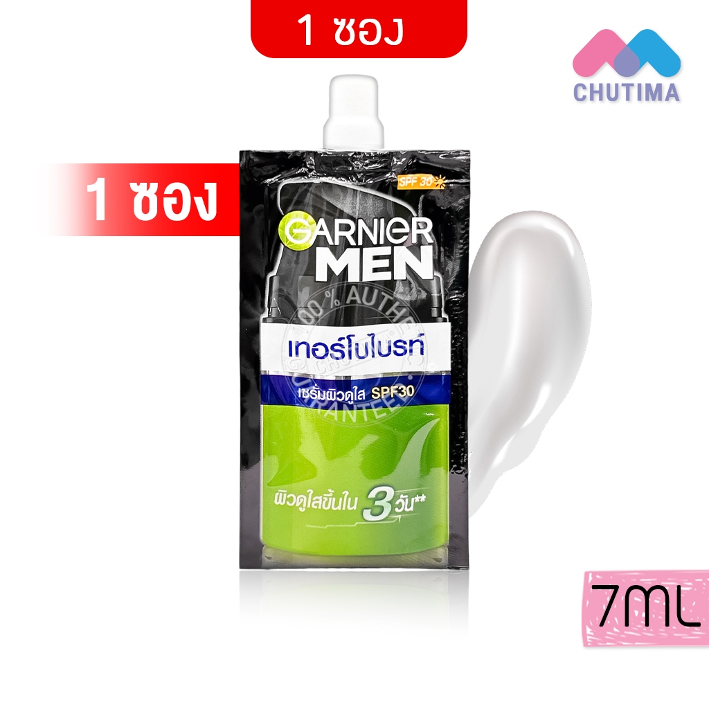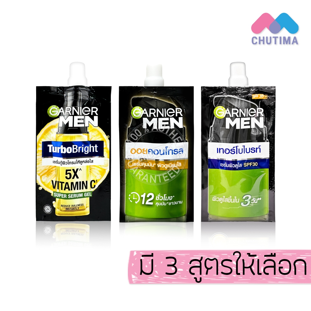 (1 ซอง) การ์นิเย่ เมน เซรั่ม ครีมซอง Garnier Men TurboBright Super Serum / Brightening SPF50+ / Oil Control Serum 7 ml.