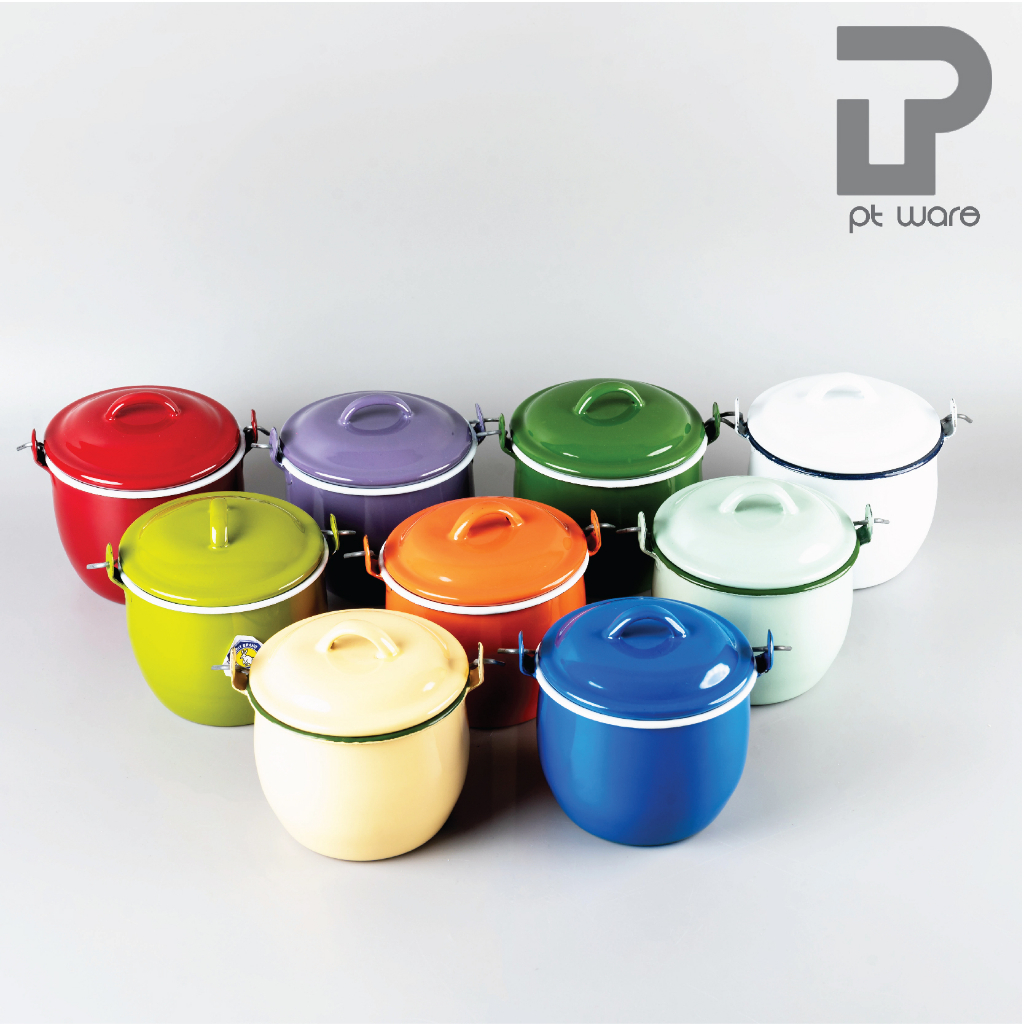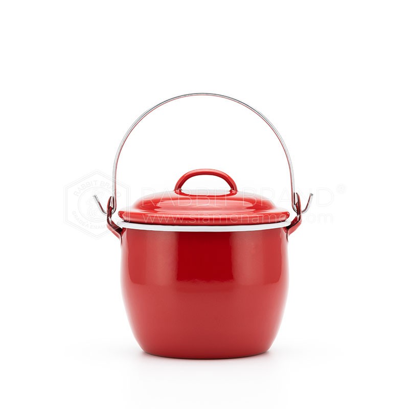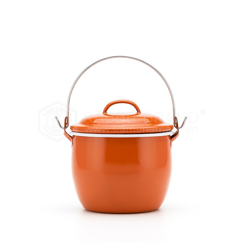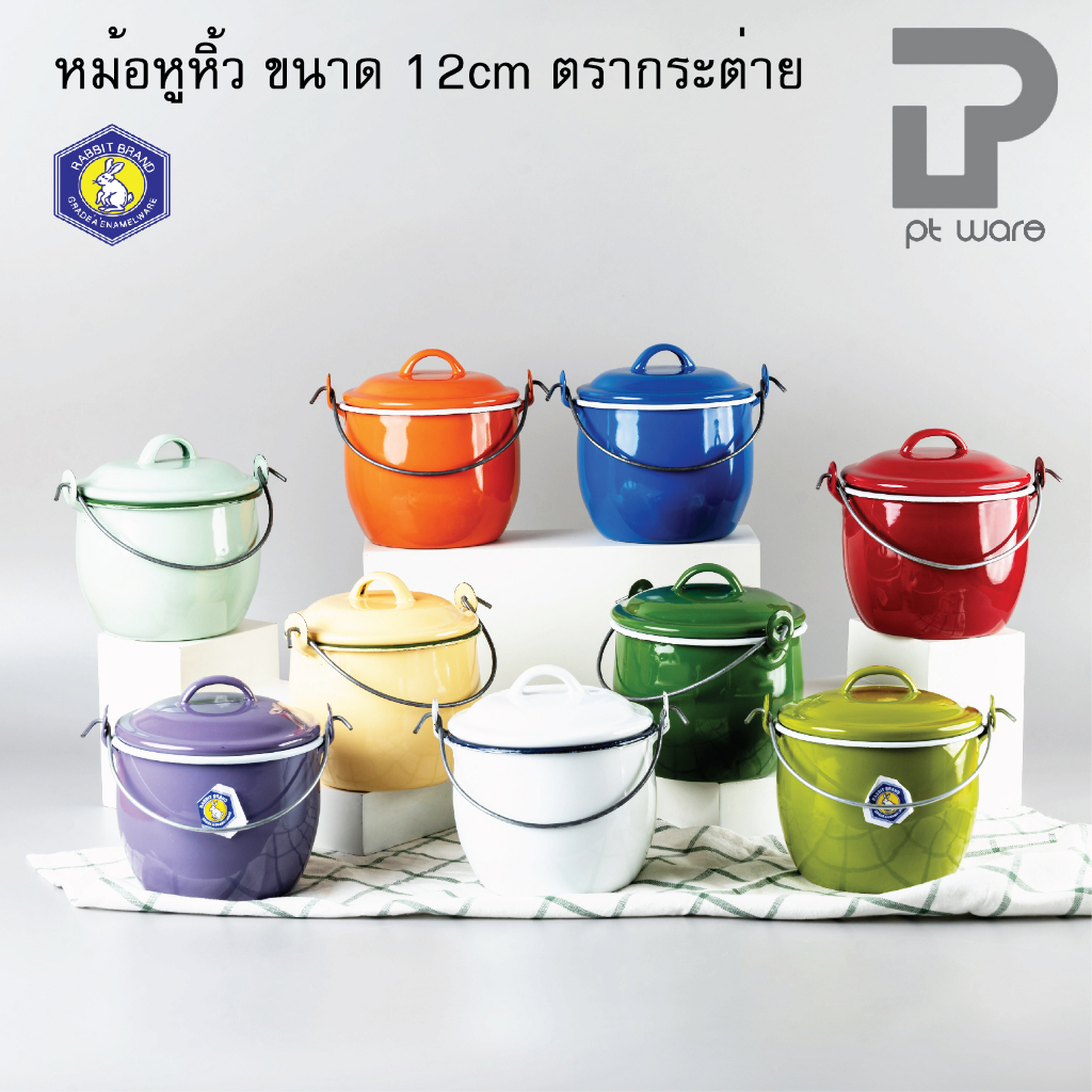 หม้อเคลือบ หม้อหูหิ้ว หม้ออวย เคลือบอินาเมล หลากสี ตรากระต่าย ขนาด12cm
