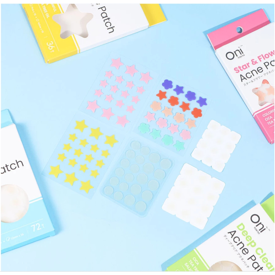 Oni Acne Patch แผ่นแปะสิวไฮโดรคอลลอยด์ ติดแน่น เรียบเนียนไปกับผิว ช่วยดูดซับสิว : รูปทรงดาว/รูปทรงดาว และดอกไม้