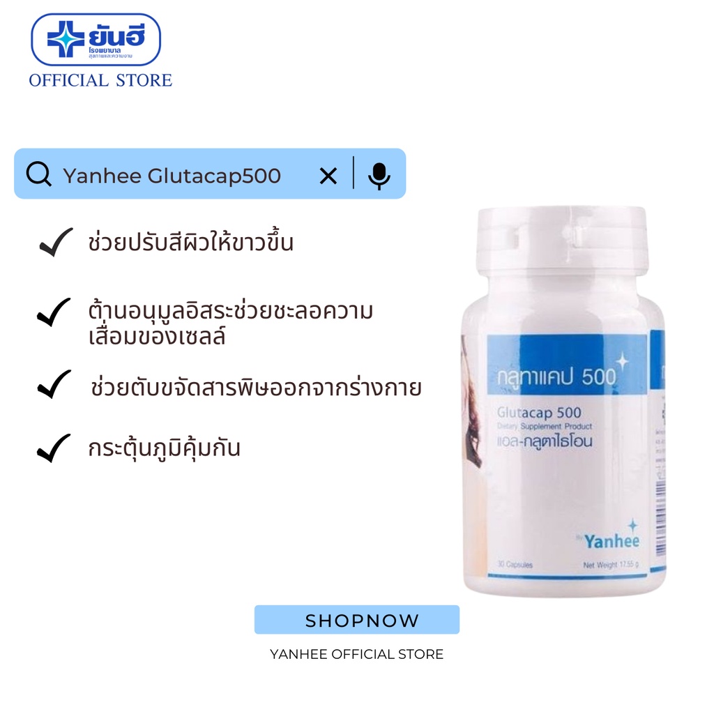 Yanhee Glutacap 500 30Cap แอล-กลูตาไธโอน 30 แคปซูล