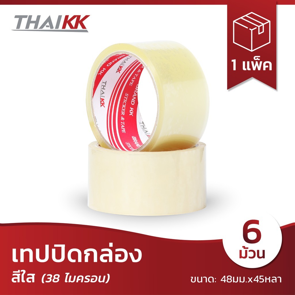(ยกแพ็ค6ม้วน) ThaiKK เทปน้ำตาล เทปใส OPP ปิดกล่อง ติดกล่อง 2 นิ้ว 45 หลา by กำตังค์