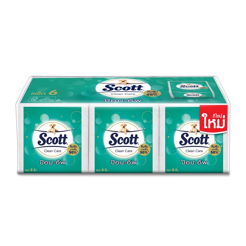 [ทั้งหมด 6 แพ็ค] สก๊อตต์ คลีนแคร์ ป๊อปอัพ กระดาษชำระหนา 3 ชั้น บรรจุ 60 แผ่น (แพ็ค 6 ห่อ) SCOTT CLEAN CARE POP UP 60 S.
