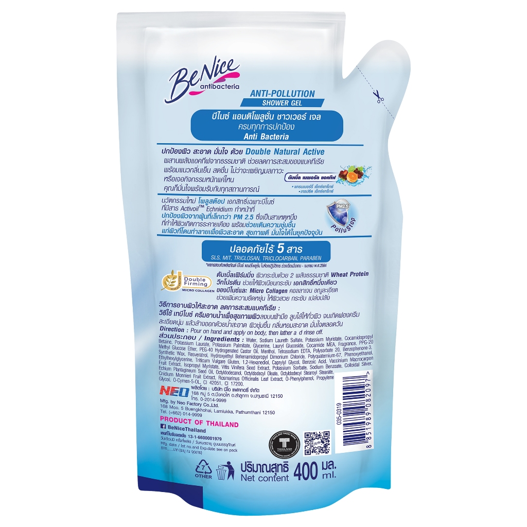 BENICE - Shower Gel Anti-Pollution 400ml pouch บีไนซ์ เจลอาบน้ำ แอนตี้แบค แอนติโพลูชั่น 400มล