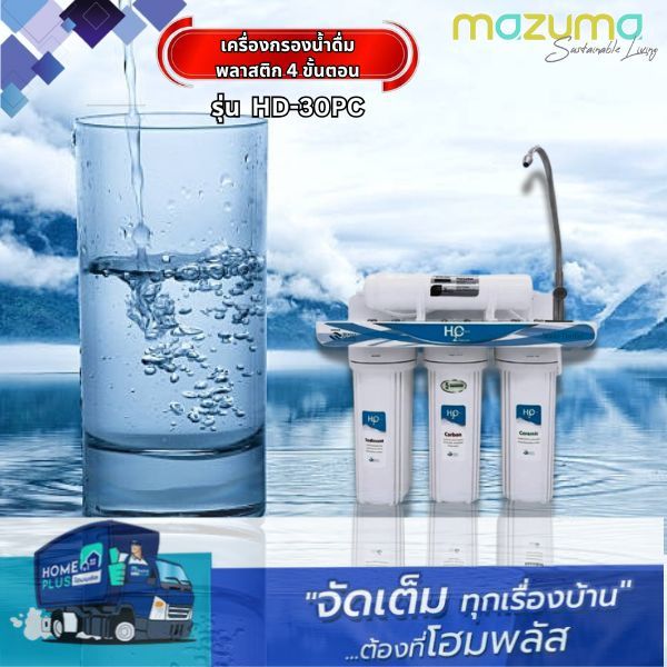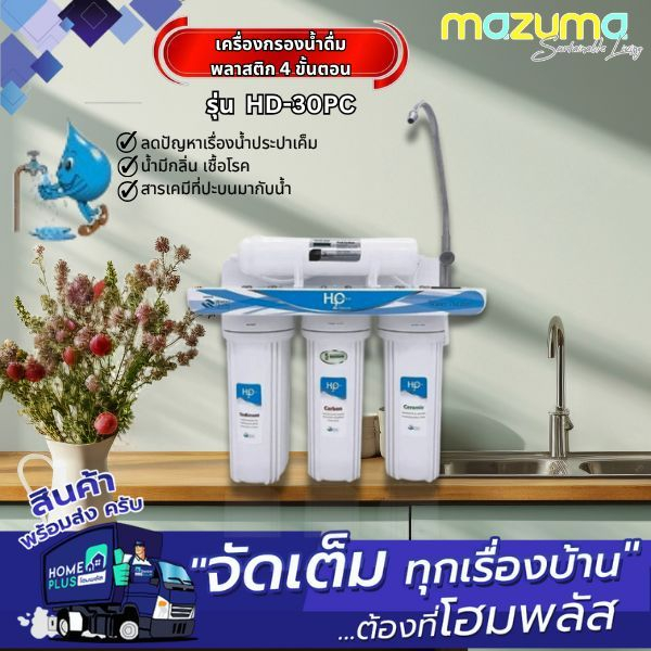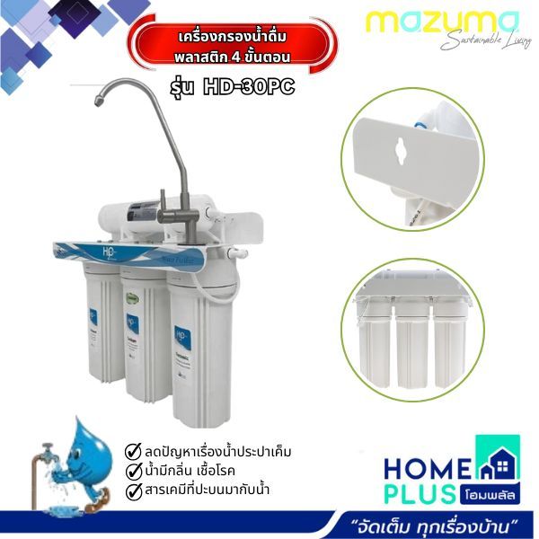 MAZUMA เครื่องกรองน้ำดื่มพลาสติก 4 ขั้นตอน HD-30PC สีขาว