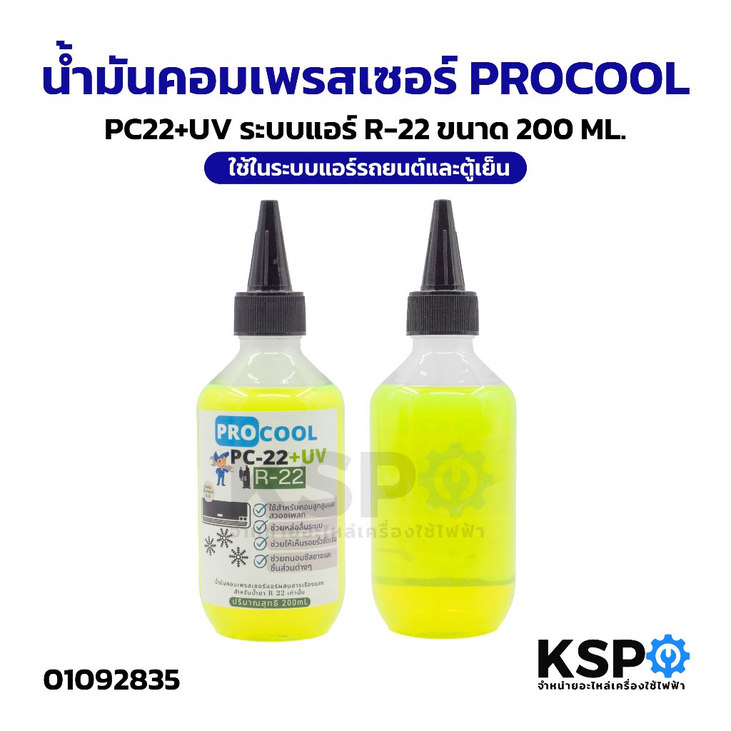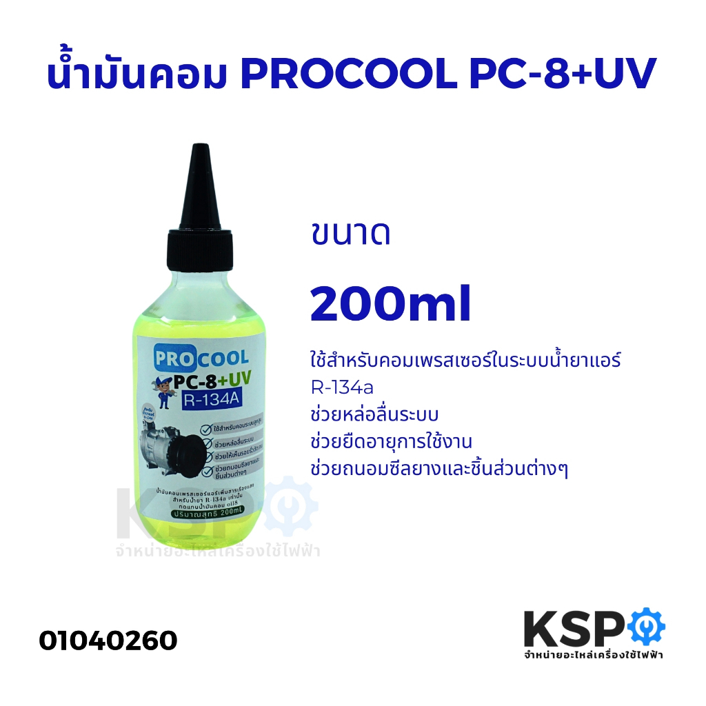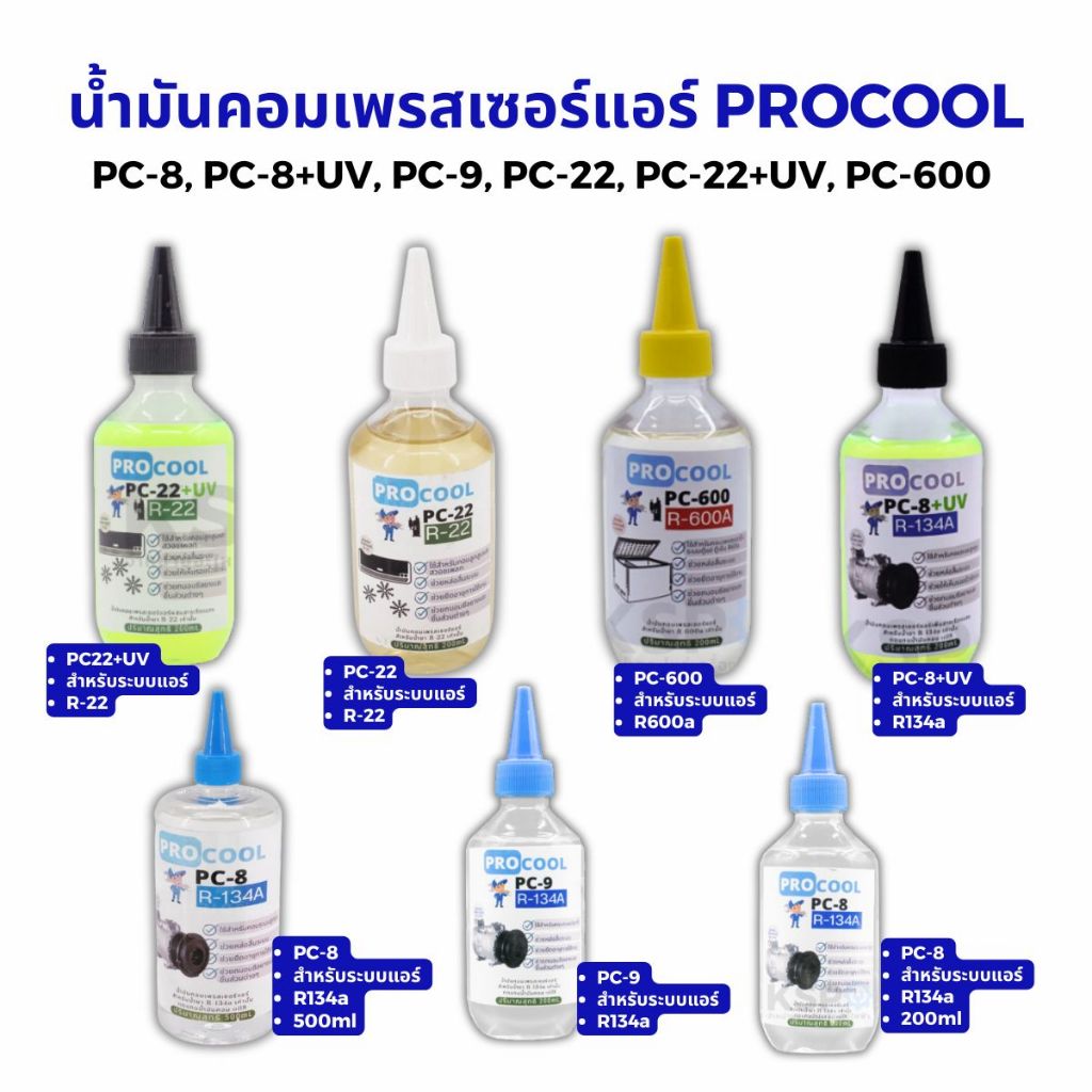 น้ำมันคอมเพรสเซอร์แอร์ PROCOOL PC-8, PC-8+UV, PC-9, PC-22, PC-22+UV, PC-600 ขนาด 200ml 500ml ใช้ในระบบแอร์รถยนต์