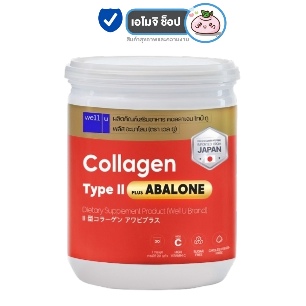 WELL-U Collagen Type 2 Plus Abalone เวล ยู คอลลาเจน ไทป์ทู พลัส อบาโลน [อบาโลน กระปุกขาวส้ม 100 กรัม] [1 กระปุก]