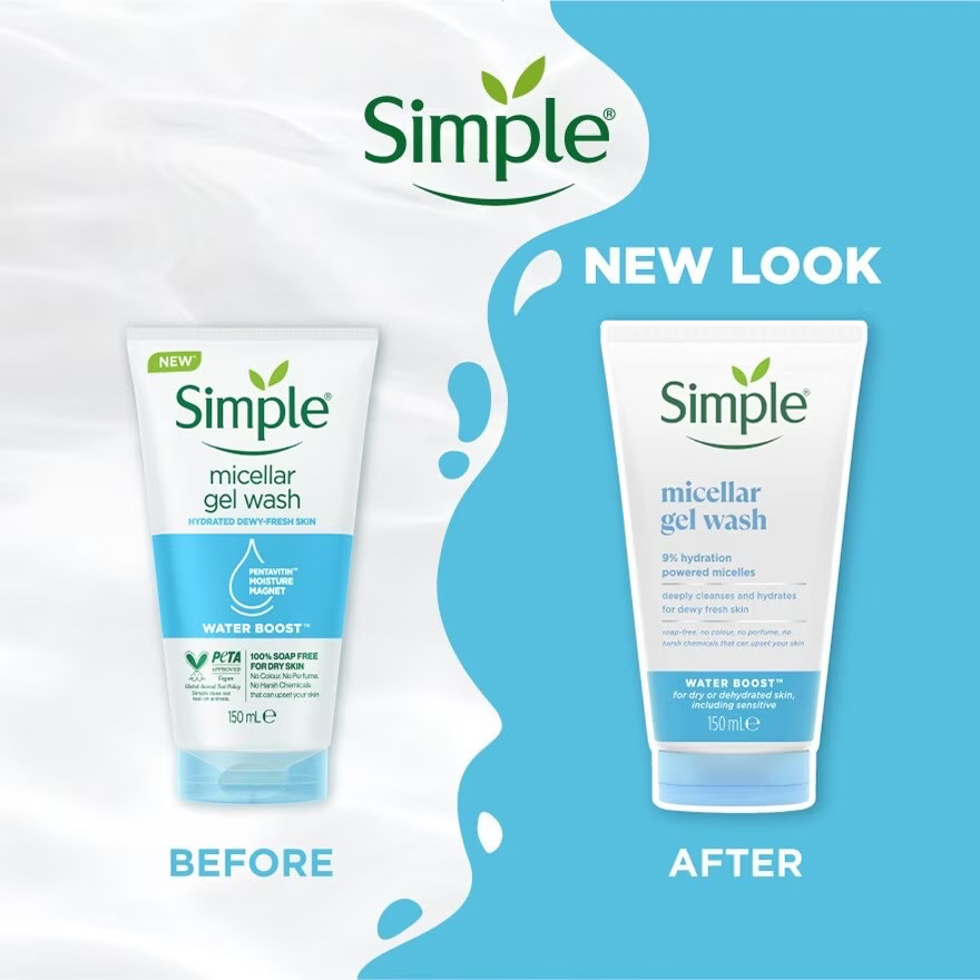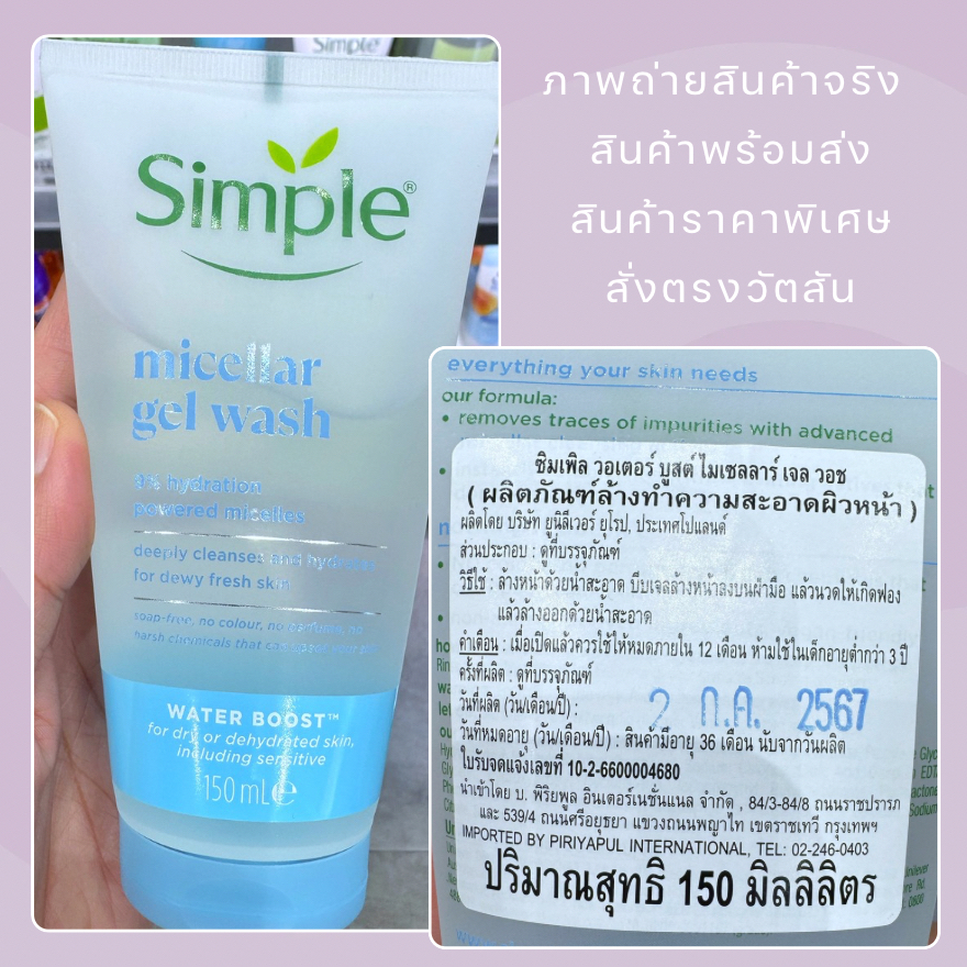 Exp.27 | Simple ซิมเพิล วอเตอร์ บูสต์ ไมเซล่า เฟเชียล เจล วอช 150 มล. เจลล้างหน้า - หลอดฟ้าใส