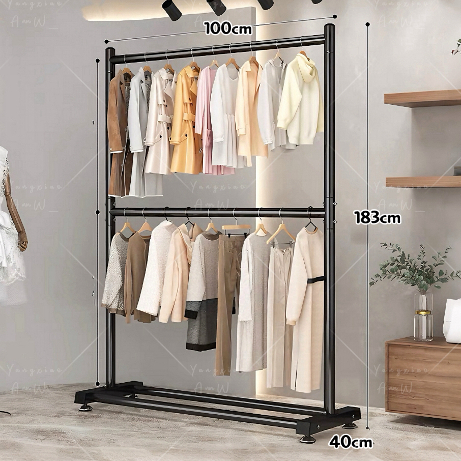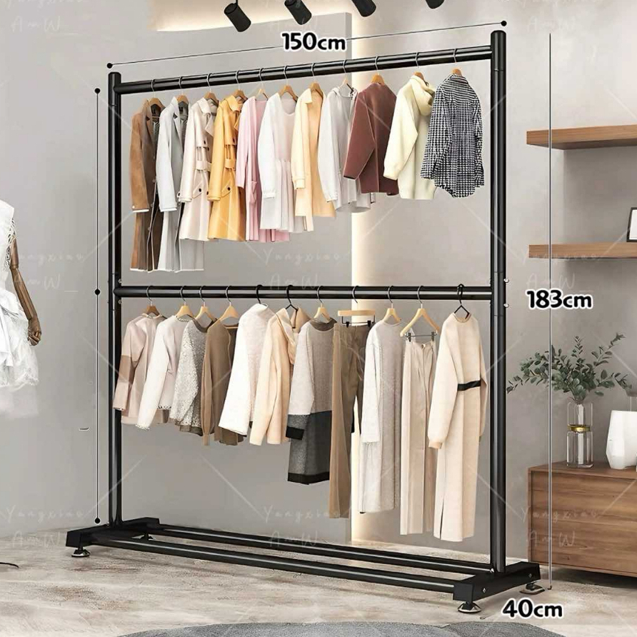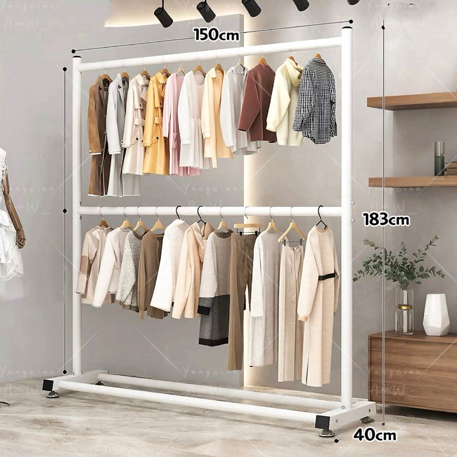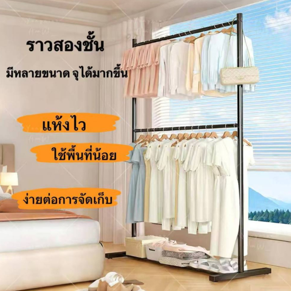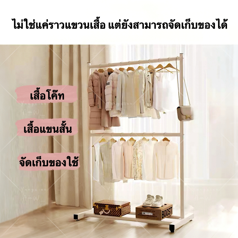 Dogegg🐶ราวเเขวนผ้าแบบเหล็ก ราวแขวนเสื้อผ้า2ชั้น โครงเหล็กเเข็งเเรง ประกอบง่าย น้ำหนักเบา