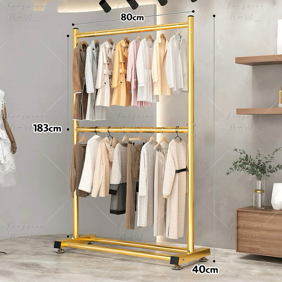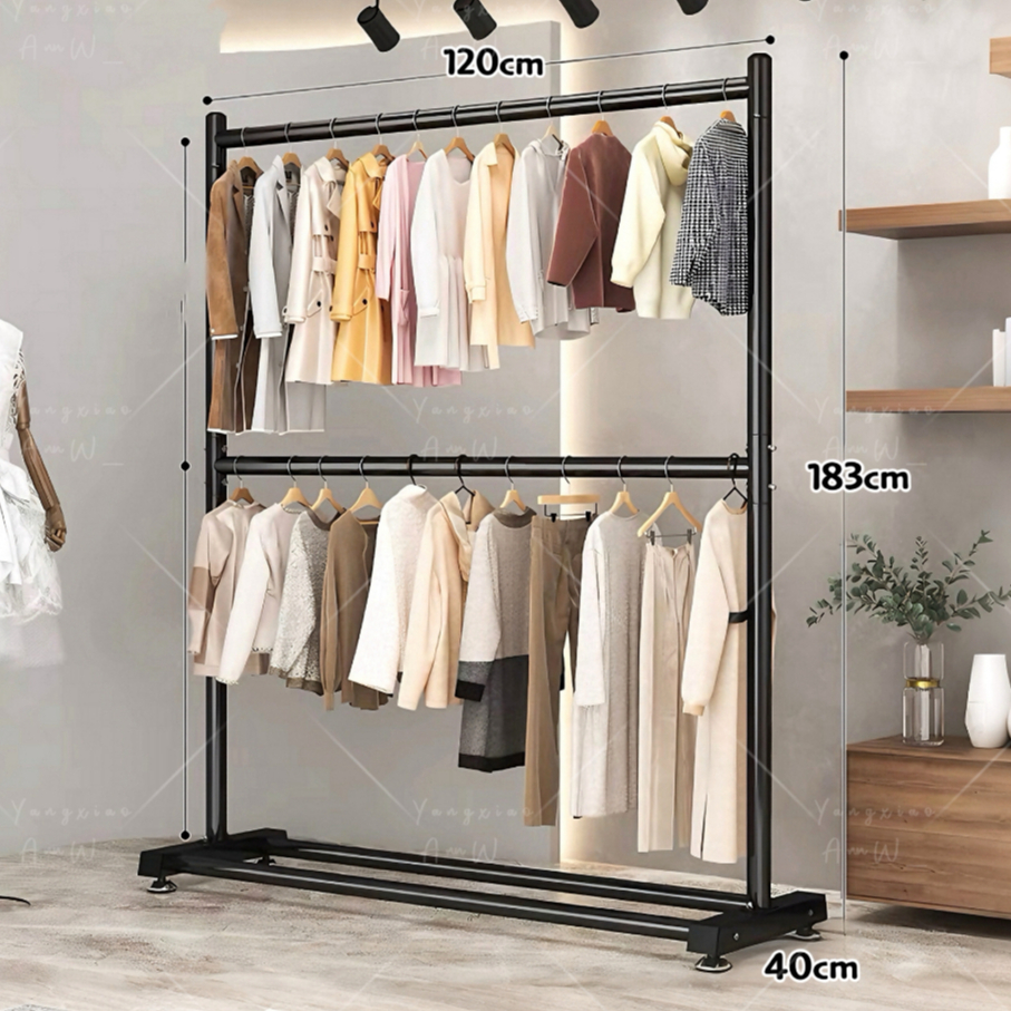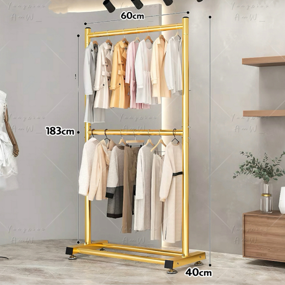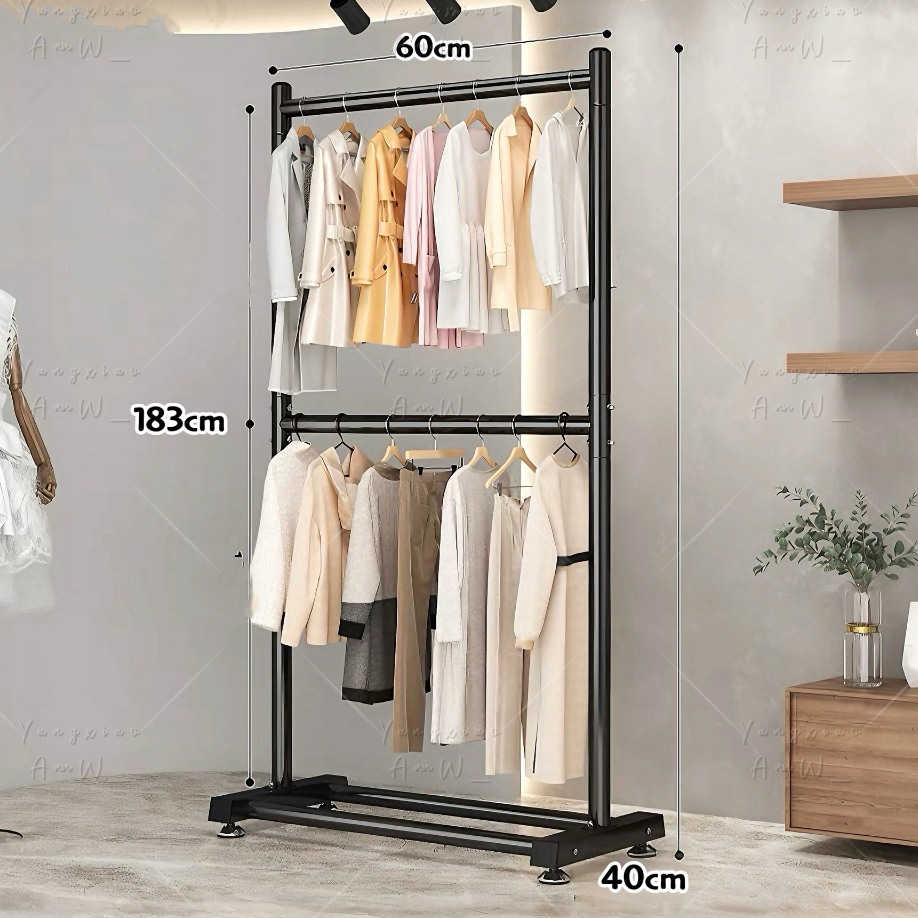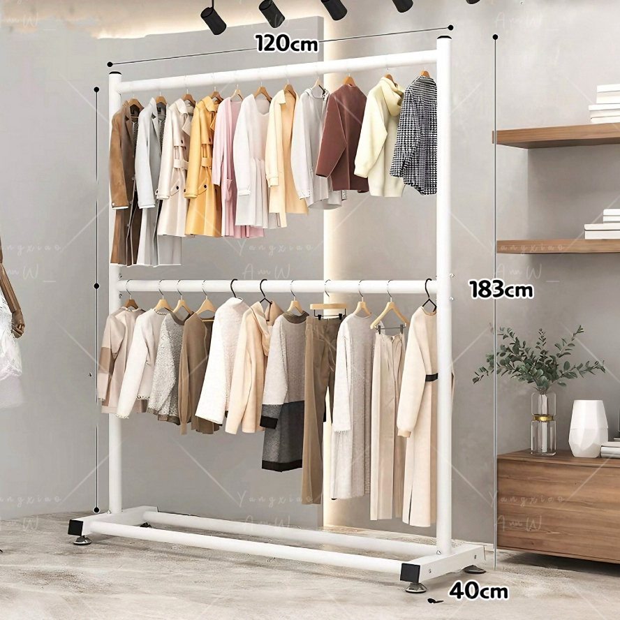 Dogegg🐶ราวเเขวนผ้าแบบเหล็ก ราวแขวนเสื้อผ้า2ชั้น โครงเหล็กเเข็งเเรง ประกอบง่าย น้ำหนักเบา