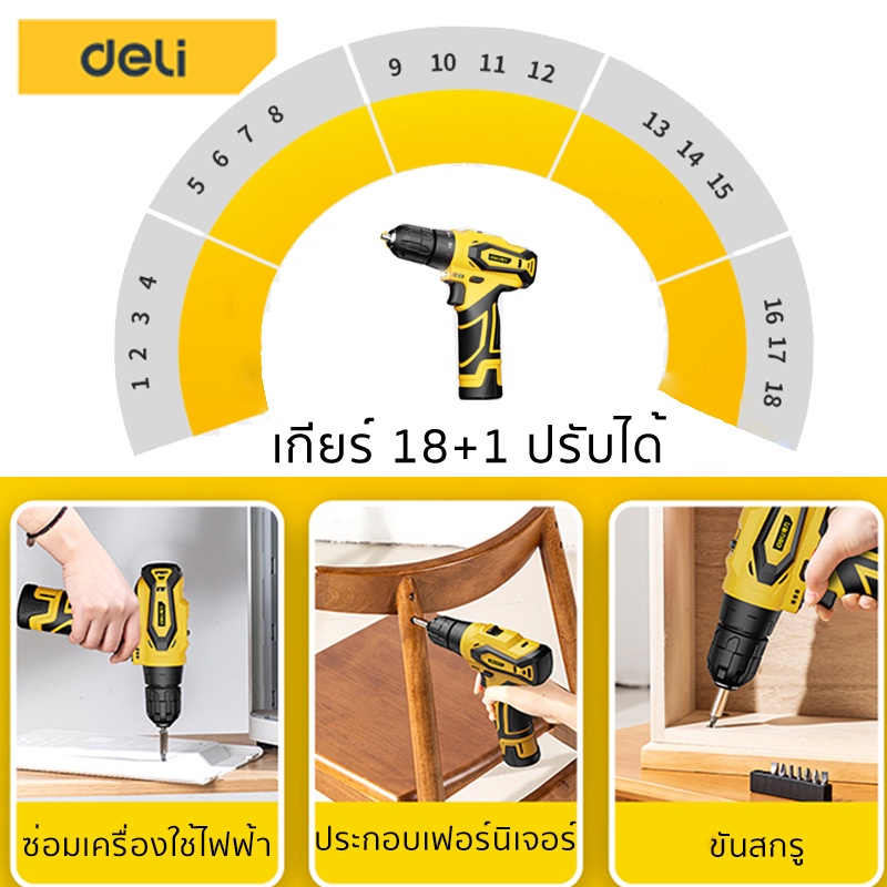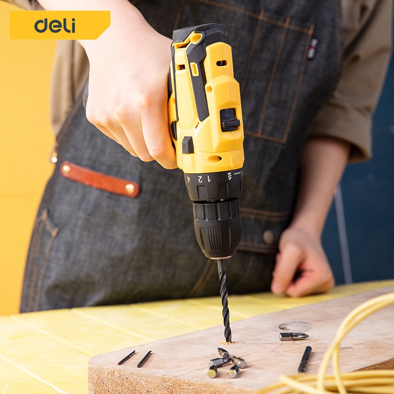 Deli สว่านไร้สาย สว่านไฟฟ้า ไขควงไฟฟ้า สว่านไขควง สว่านเจาะปูนไร้สาย อุปกรณ์ครบครัน Electric Drill