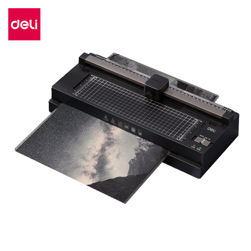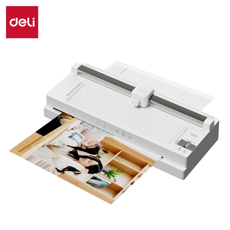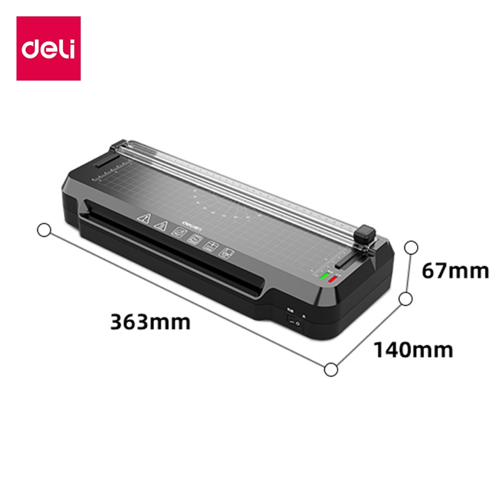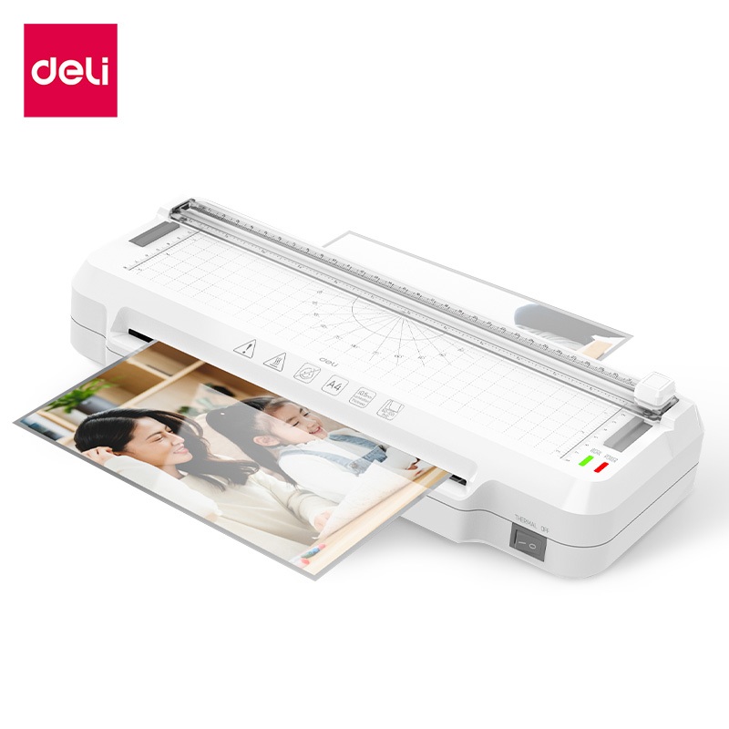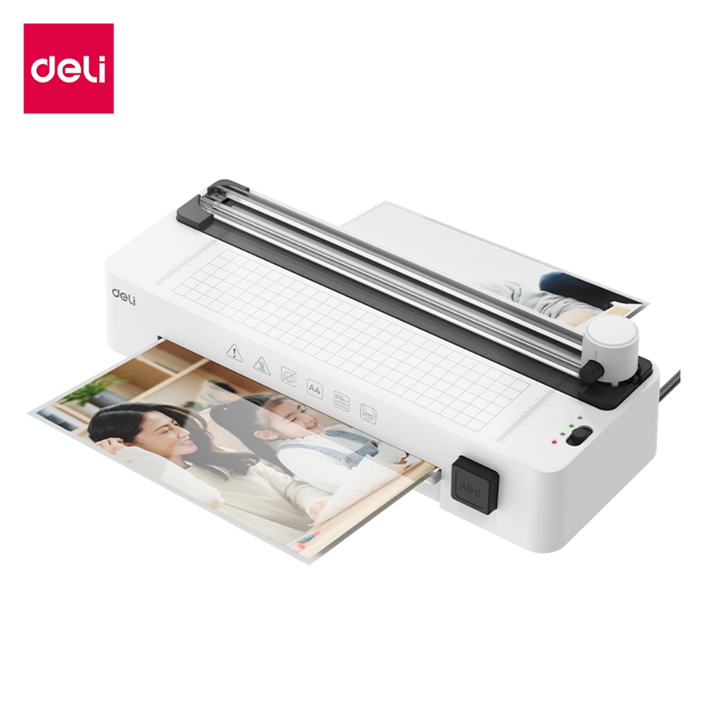 Deli เครื่องเคลือบเอกสาร เครื่องเคลือบบัตร 2in1 แถมฟรีที่ตัดกระดาษ และเครื่องตัดมุม ร้อนเร็วภายใน4นาที Laminator