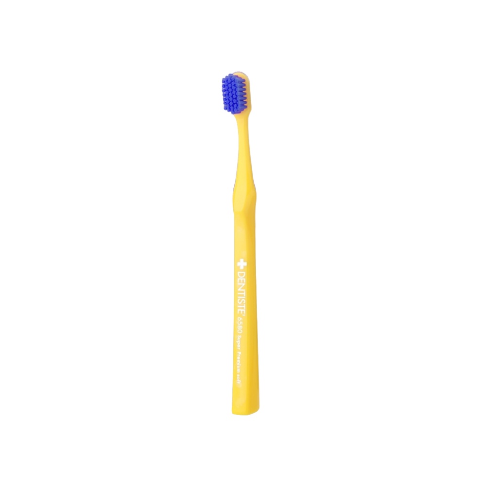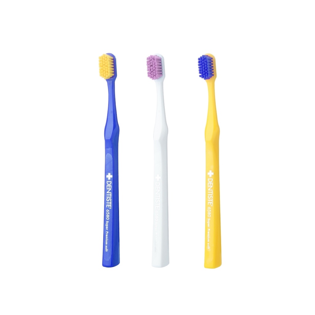 Dentiste' 6580 Gum And Tooth Brush แปรงสีฟัน ป้องกันเหงือกร่น เดนทิสเต้ น้ำเงิน ขาว เหลือง(แพ็ค 3)