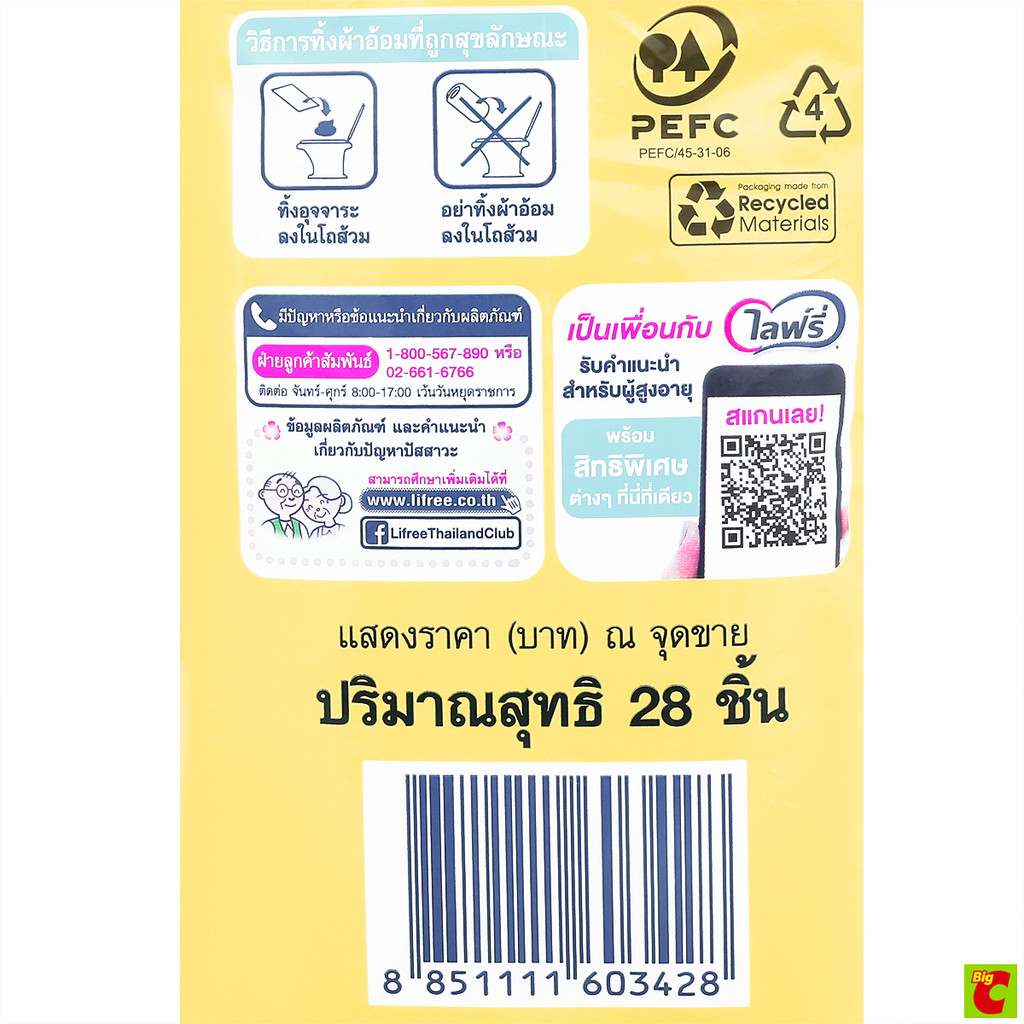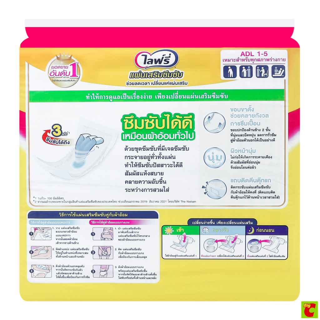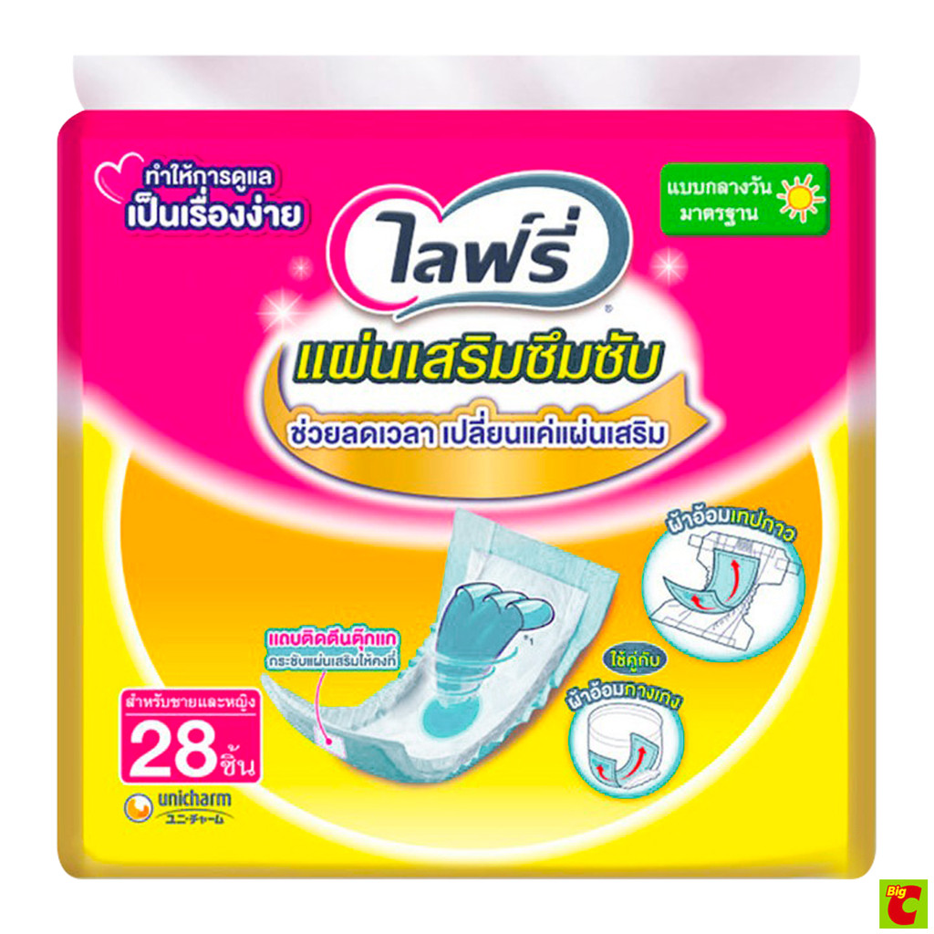 ไลฟ์รี่ แผ่นเสริมซึมซับ สำหรับกลางวัน ขนาดมาตรฐาน 28 ชิ้น