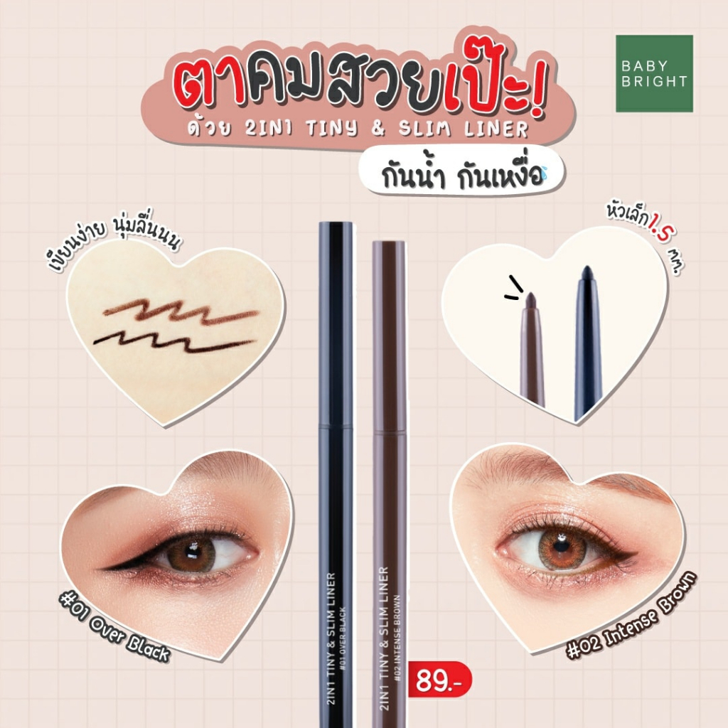 BABY BRIGHT 2 IN 1 TINY & SLIM LINER 0.1G. เบบี้ ไบร์ท ทูอินวัน อายไลน์เนอร์และอินไลน์เนอร์เนื้อครีมในแท่งเดียว