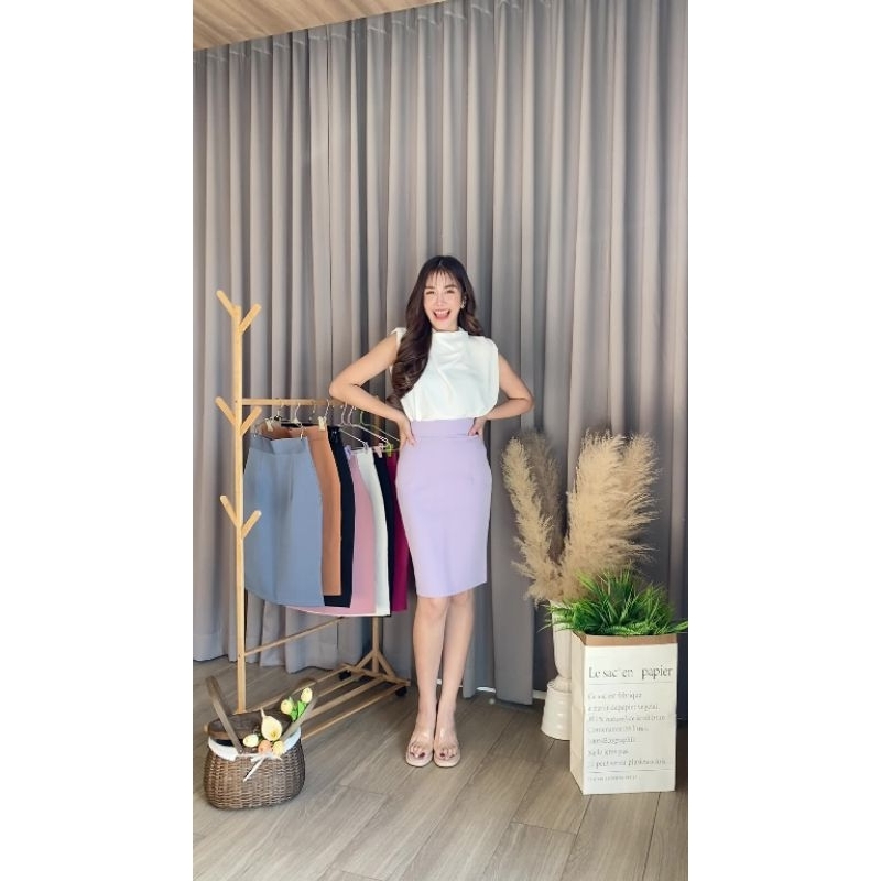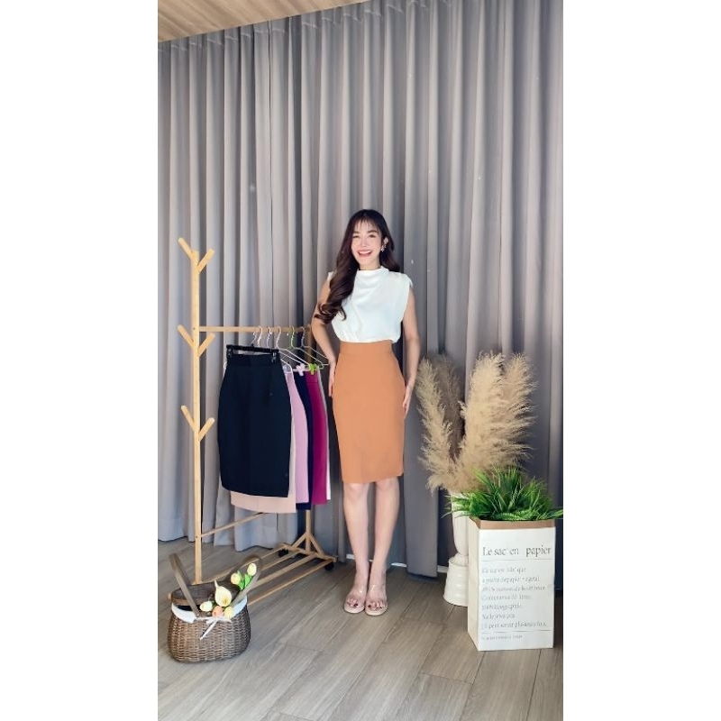 🧡กระโปรงทรงสอบ "ผ่าหลัง" เอวสูง ผ้าดี ทรงสวย หุ่นดูเพรียว