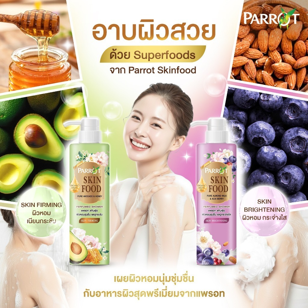 (1แถม1) Parrot Skinfood Pure Perfumed Shower 400ml แพรอท สกินฟู้ด เพียว ครีมอาบน้ำ 400มล