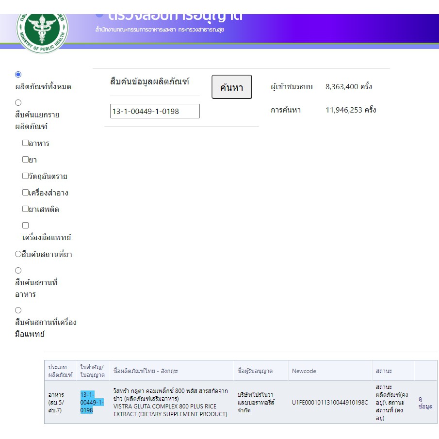 Vistra Gluta Complex 800 Plus Rice Extract 30 Tablets 30เม็ด กลูต้า