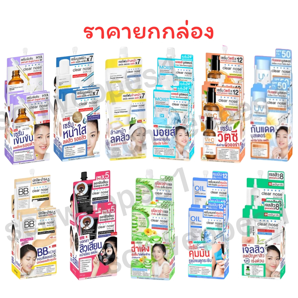(1 กล่องมี 6 ซอง) Clear Nose เคลียร์โนส BB Concealer/Black Mask/Solution Serum/Facial Cleanser/DarkSpotSerum