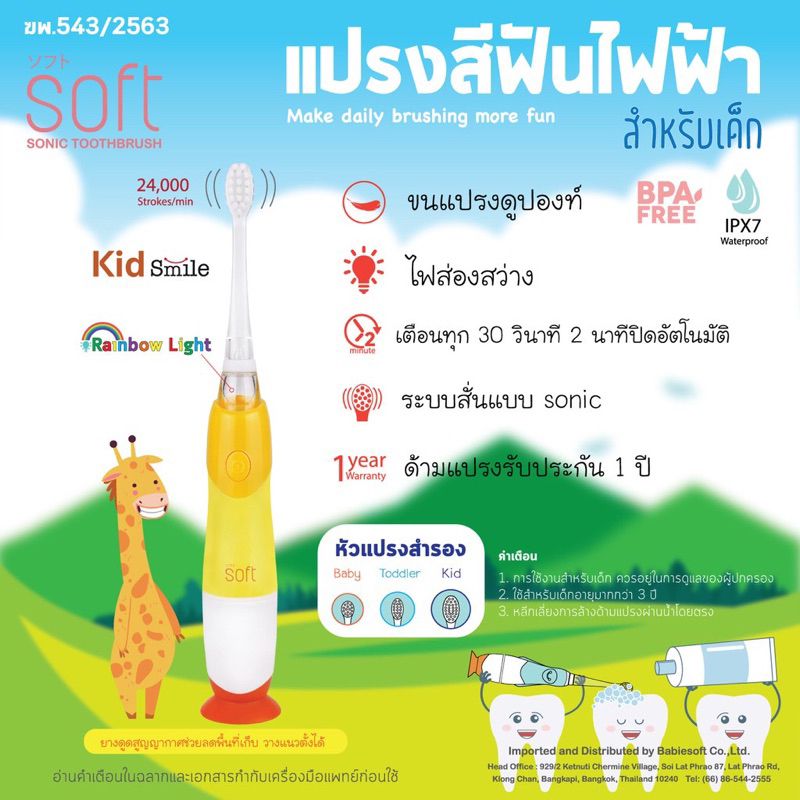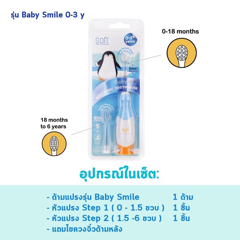 แปรงสีฟันเด็ก แปรงสีฟันไฟฟ้าระบบโซนิค SOFT สำหรับเด็ก 0-3 ขวบและ 3 ขวบขึ้นไป