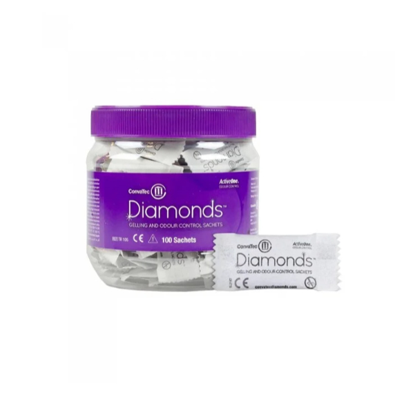 Convatec Diamonds Gelling & Odour Control Sachets ผงดับกลิ่น (ยกขวด 100 ซอง)