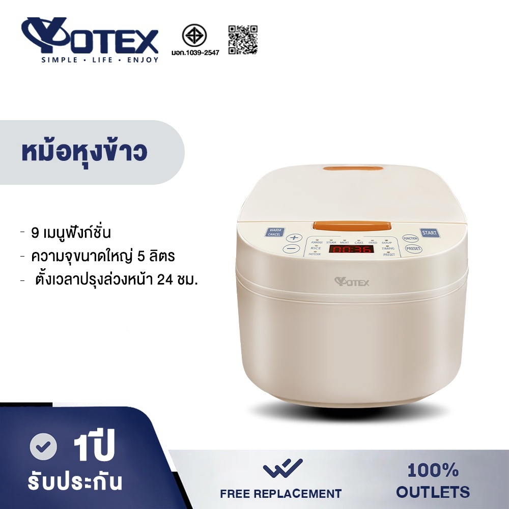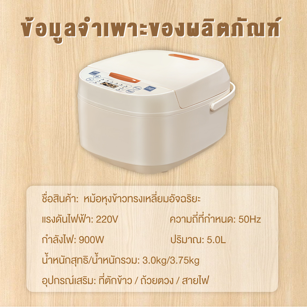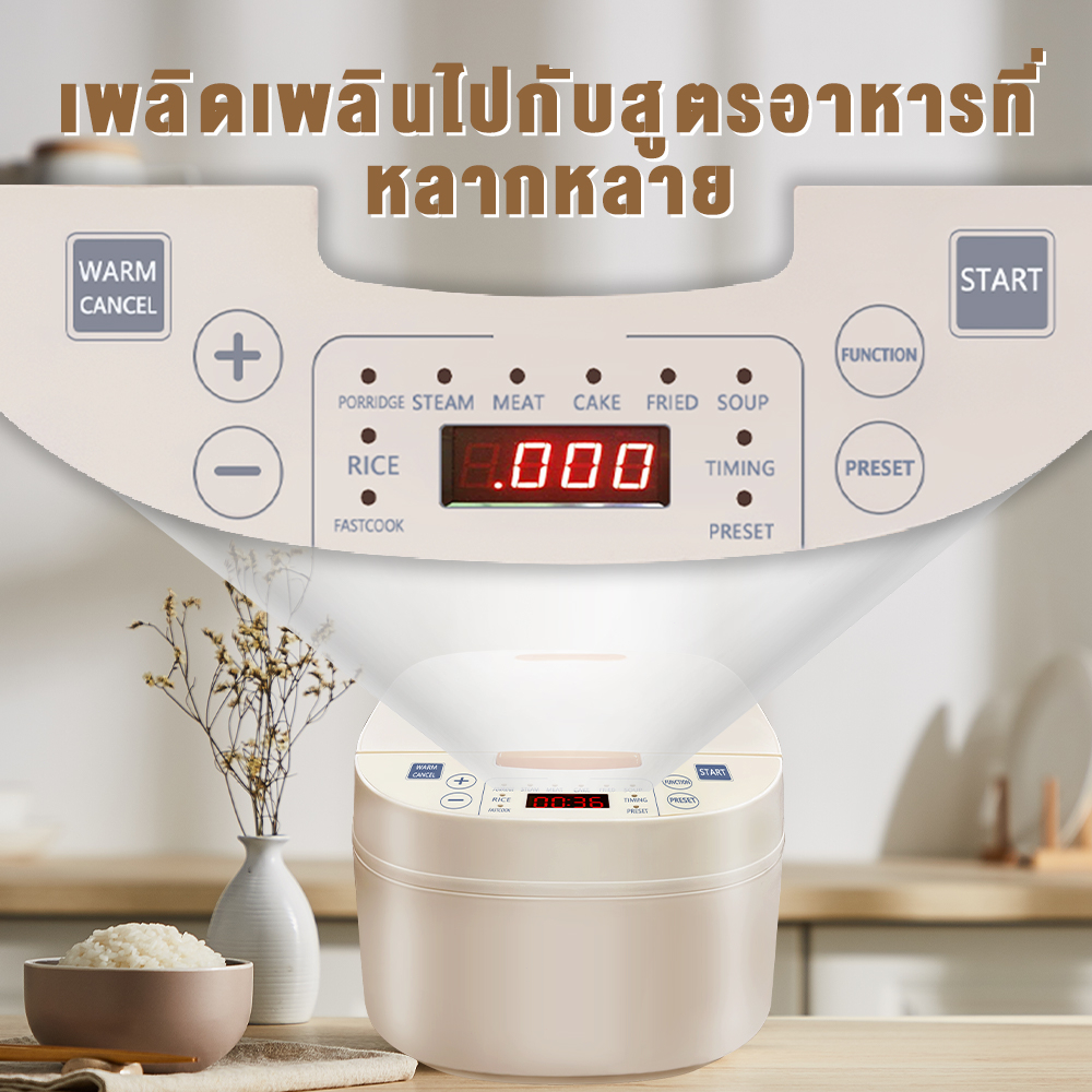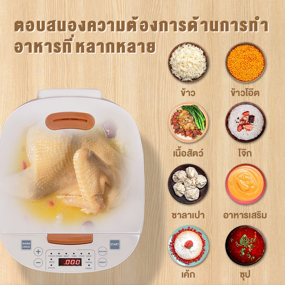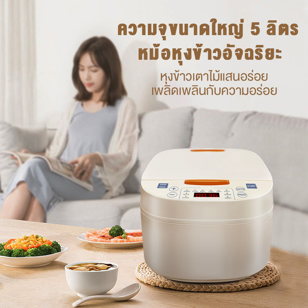 YOTEX หม้อหุงข้าว หม้อหุงข้าวดิจิตอล หม้อหุงข้าวอเนกประสงค์ 5L 9 ฟังก์ชั่น ตั้งเวลาล่วงหน้า 24 ชม.จอแสดงผล LED ให้ความ