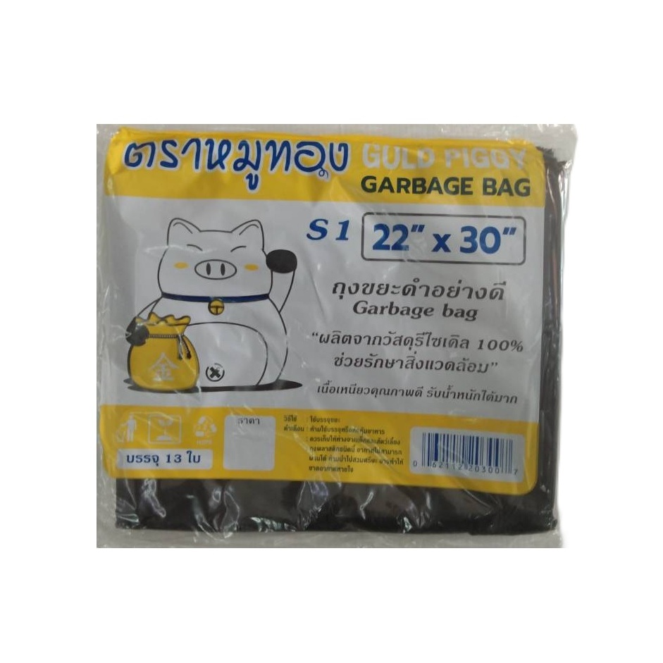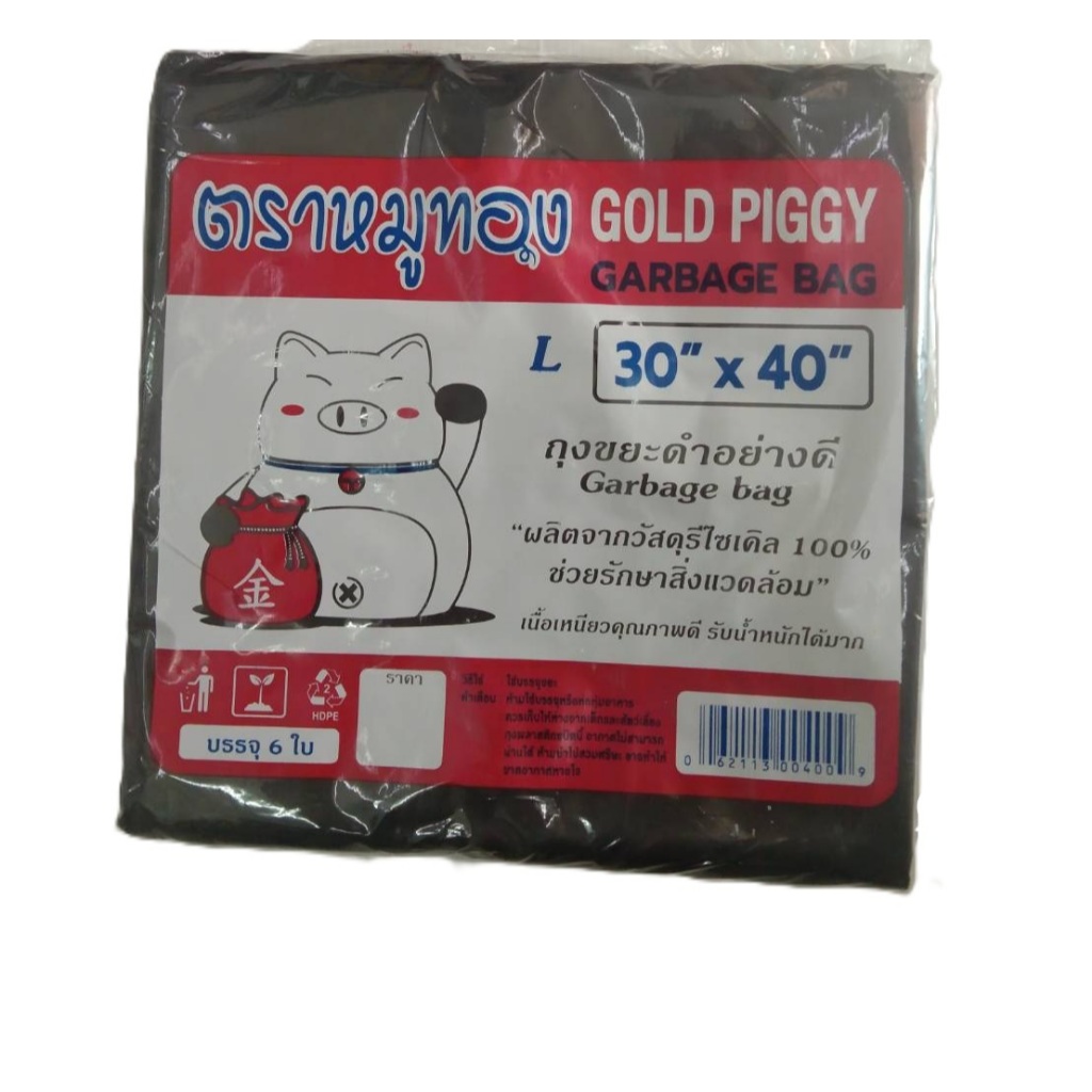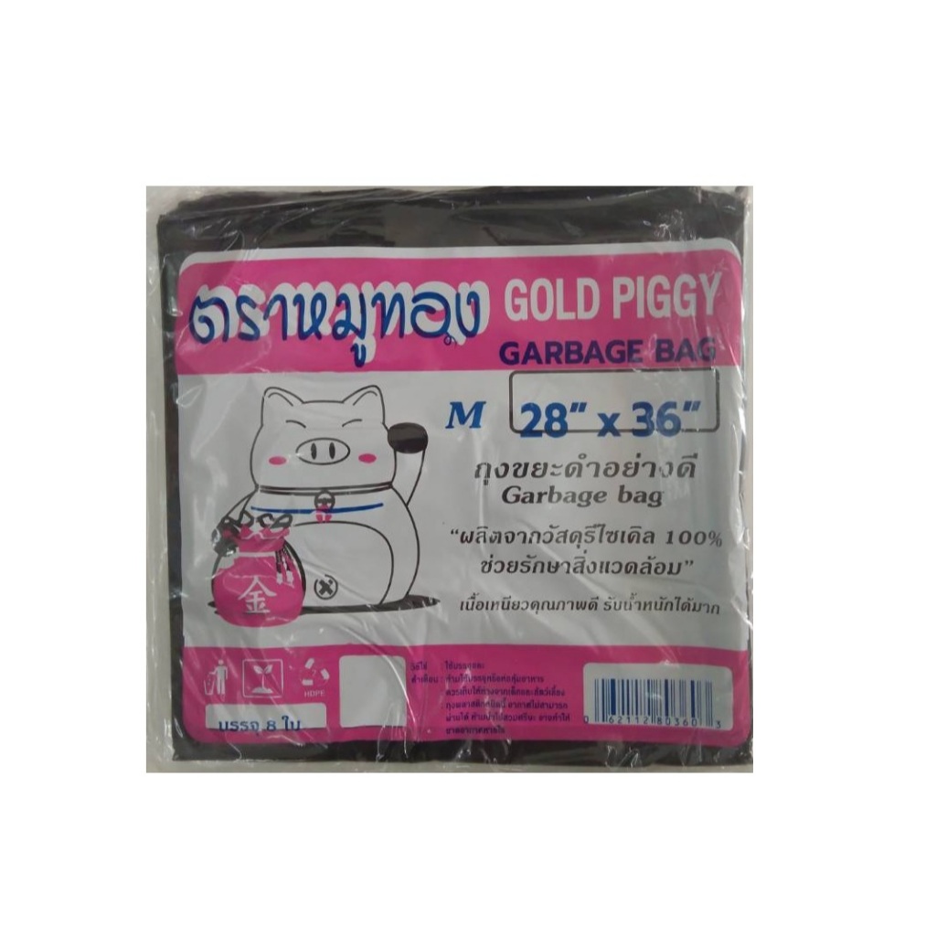 ถุงขยะ ถุงดำ อย่างดี หนามาก! ผลิตจากวัสดุรีไซเคิล100% ตราหมูทอง