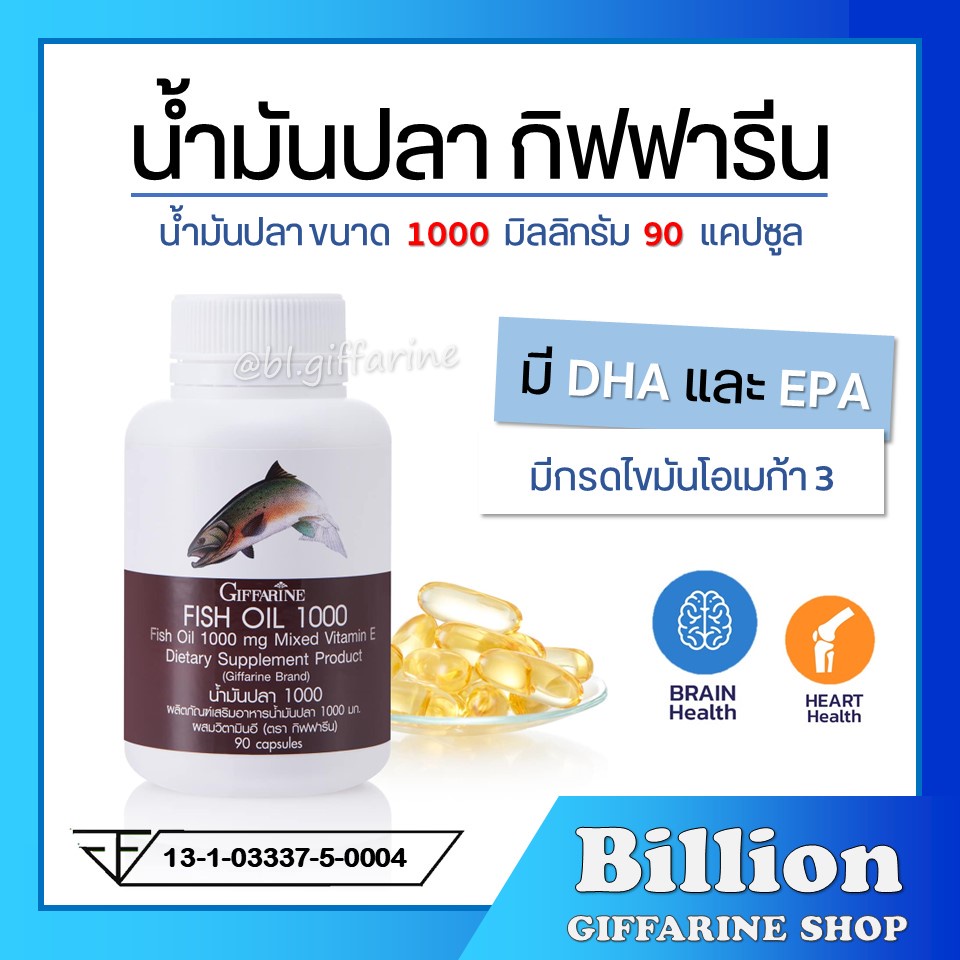[ ส่งฟรี ] น้ำมันปลา กิฟฟารีน FISH OIL 1000 มิลลิกรัม 90 แคปซูล น้ำมันตับปลา GIFFARINE Fish oil