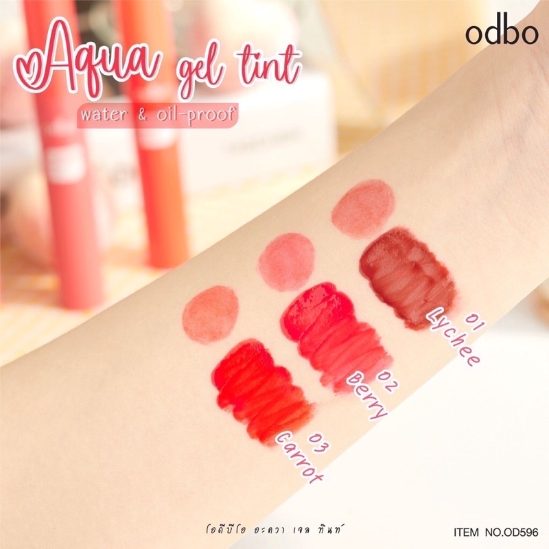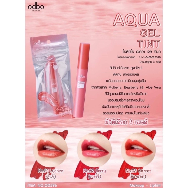 ODBO Aqua Gel Tint ขนาด 3g. โอดีบีโอ อะควา เจล ทินท์ ลิปทินท์ OD596