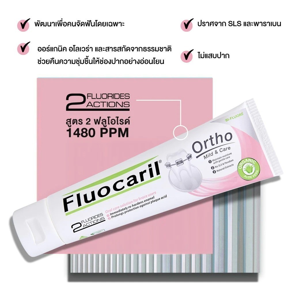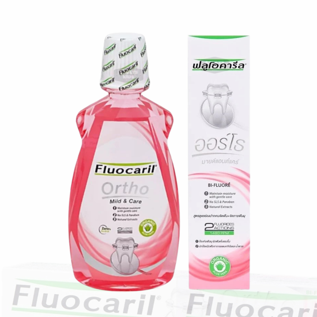ลดเพิ่ม 30% 🔥 Fluocaril ยาสีฟันจัดฟัน น้ำยาบ้วนปาก เพื่อคนจัดฟัน toothpaste mild & care (Ortho 123) 125 g 500mL [PINK]
