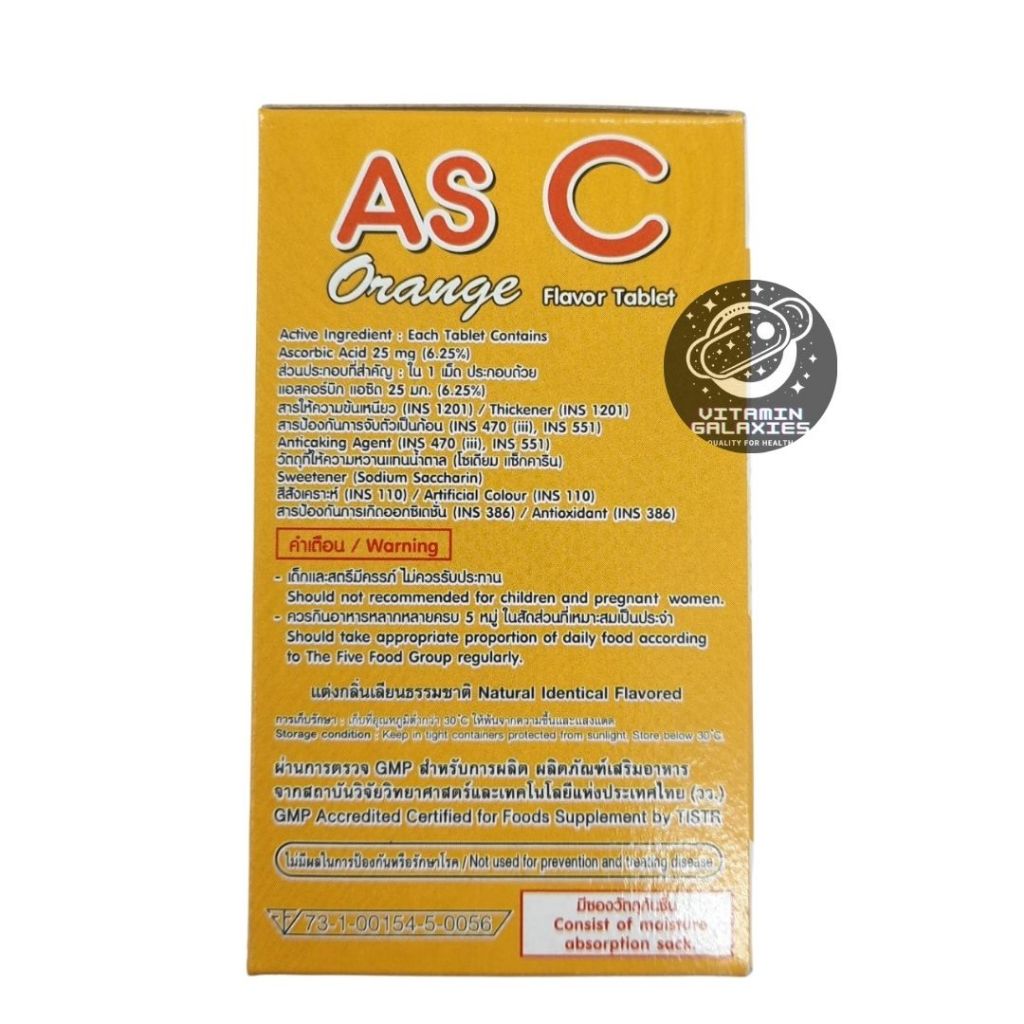 AS C Orange Flavor Tablet แอสซี วิตามินซีชนิดเม็ด รสส้ม (100's) ของแท้ พร้อมส่ง