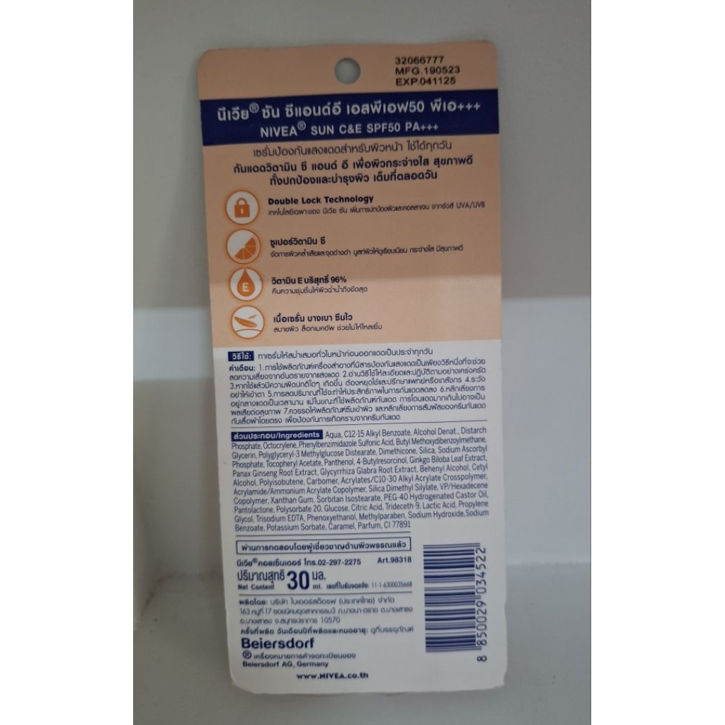 NIVEA Sun C & E SPF50/PA+++ 30 ml. เซร่ำป้องกันแสงแดดสำหรับผิวหน้า