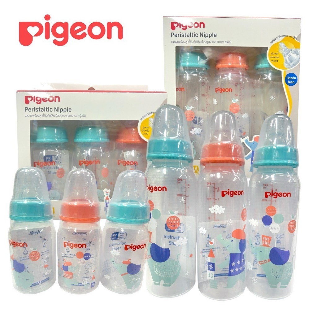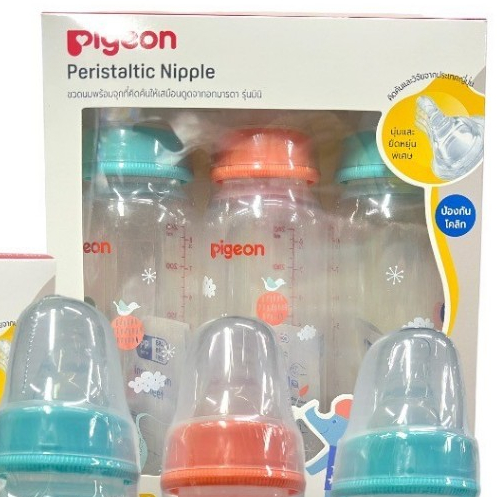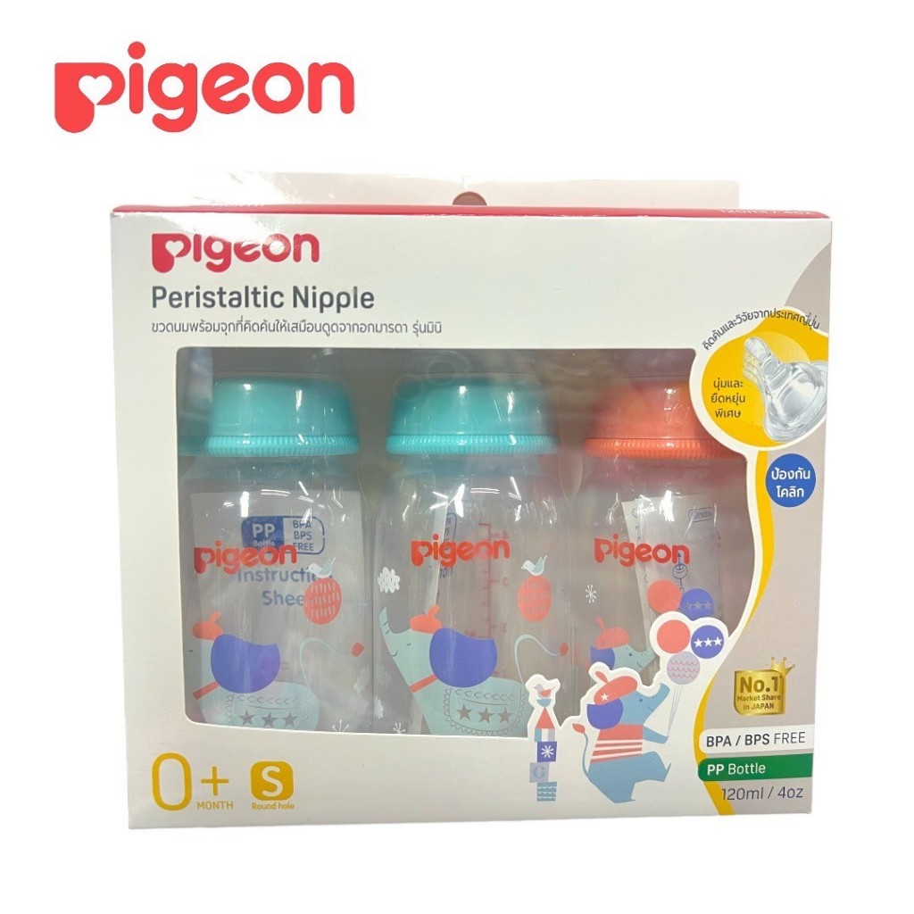 แพ็ค2 ฟรี 1ขวดนมPigeon พีเจ้น ขวดนม วัสดุPP ลายช้าง 4 และ 8ออนซ์+จุกเสมือนนมมารดา รุ่นมินิ