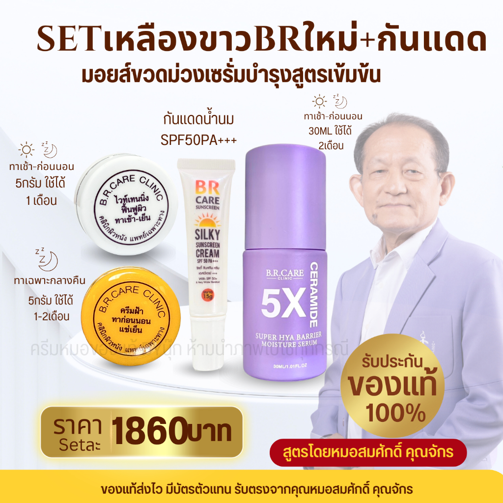 Set4ชิ้น BRเหลืองใหม่ BRขาวใหม่ มอยส์ขวดม่วง กันแดดBR