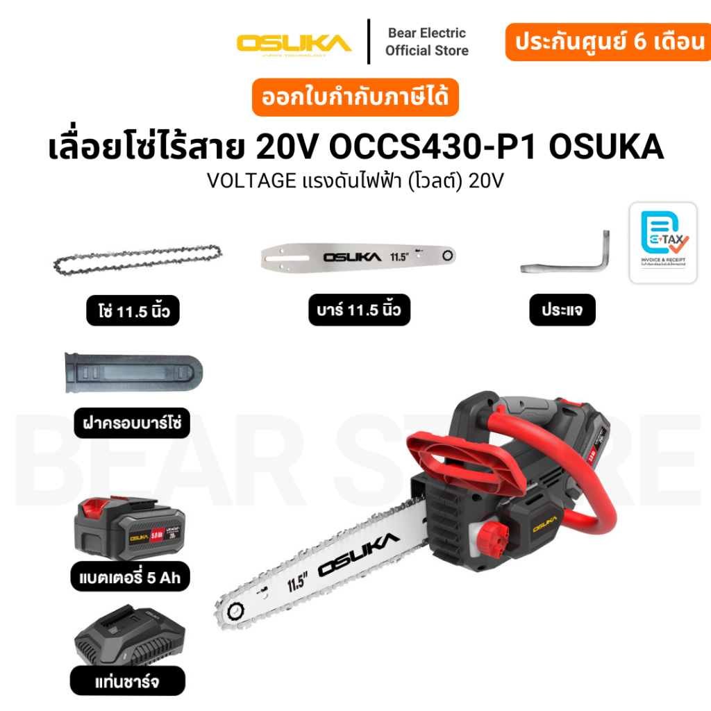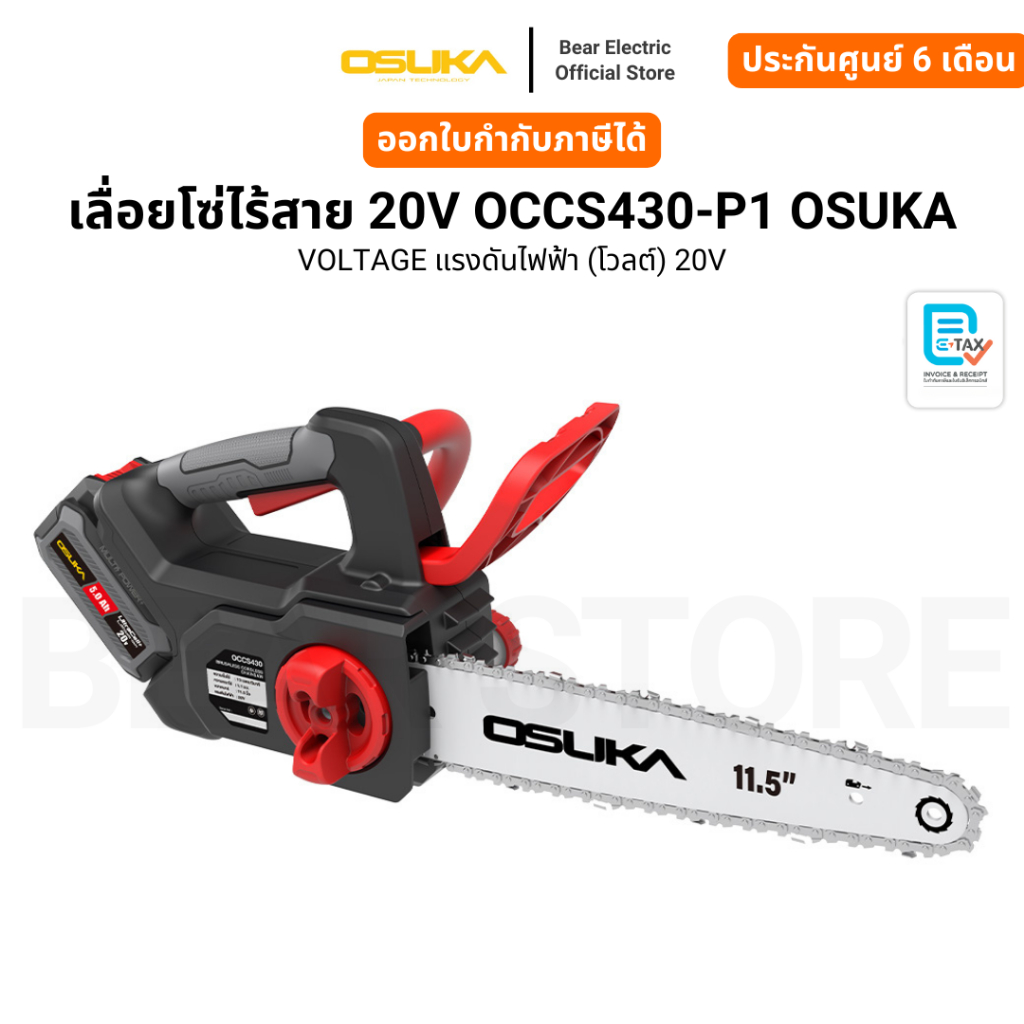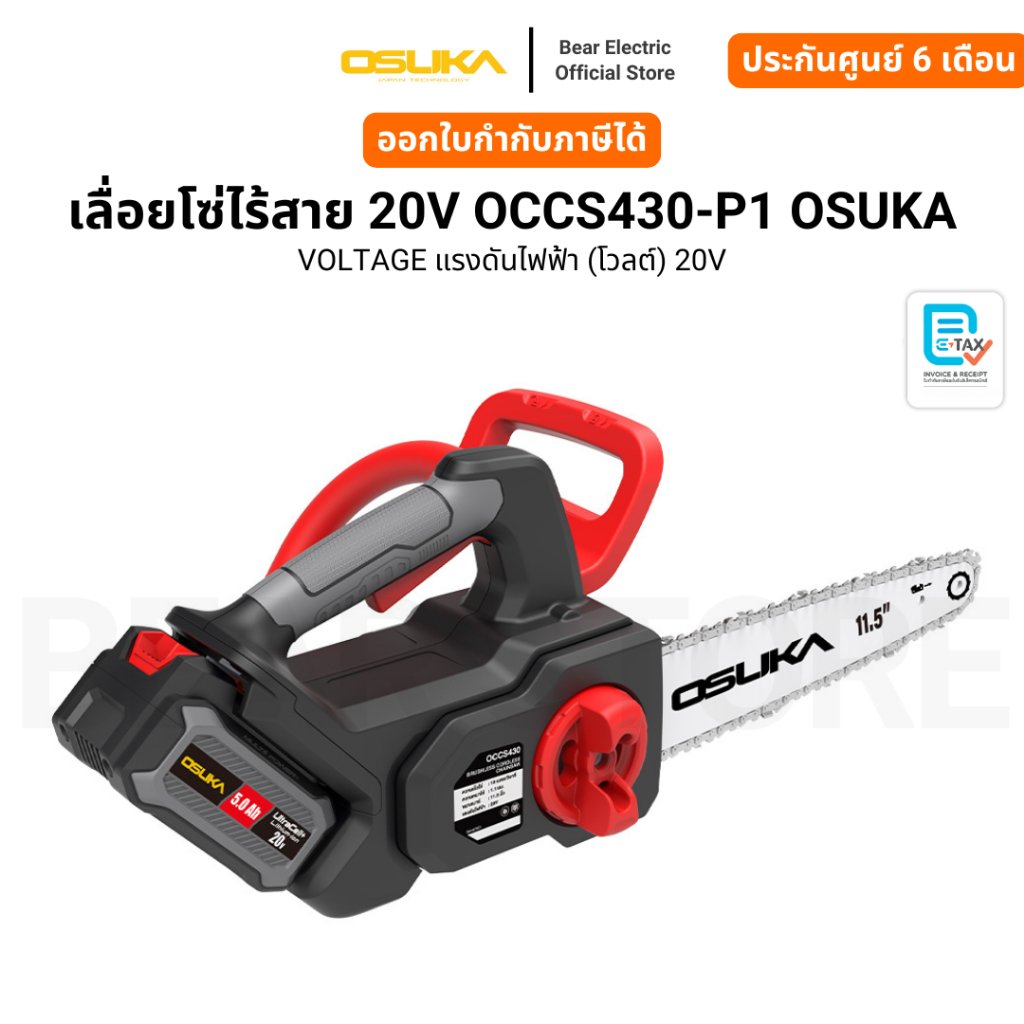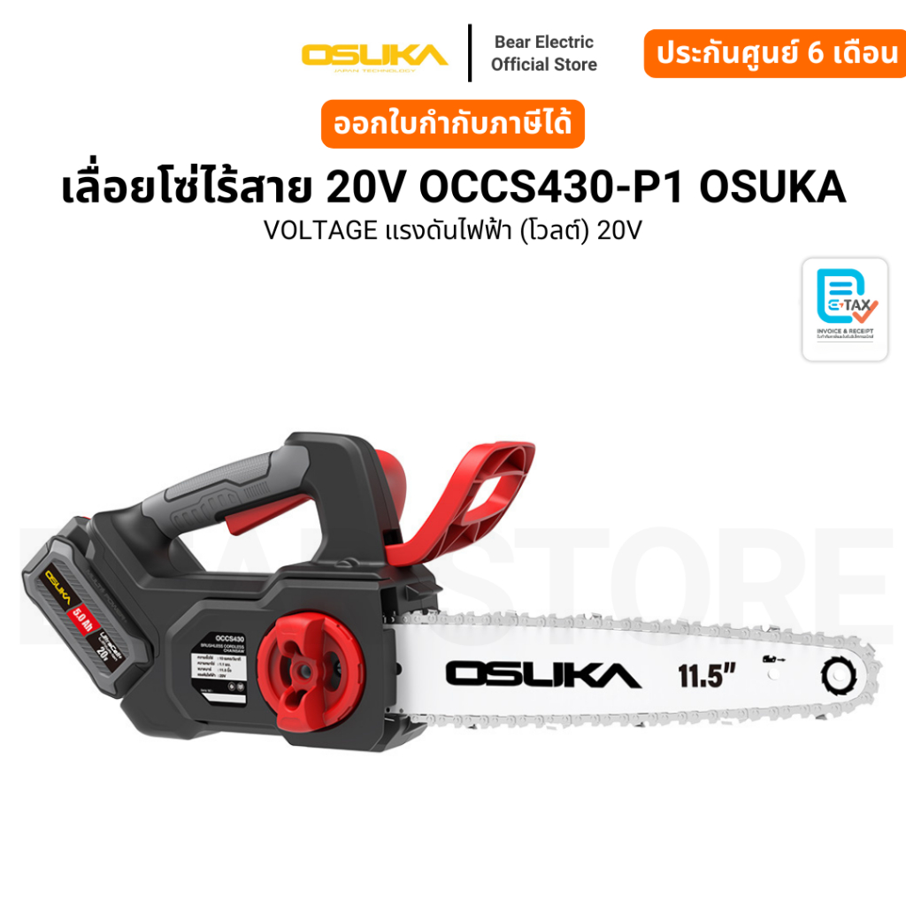 เลื่อยโซ่ไร้สาย 20V OCCS430-P1 OSUKA VOLTAGE แรงดันไฟฟ้า (โวลต์) 20V รับประกัน 6 เดือน