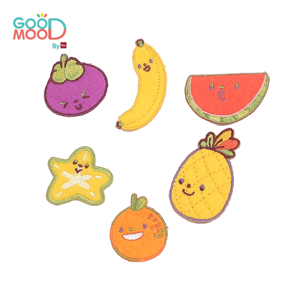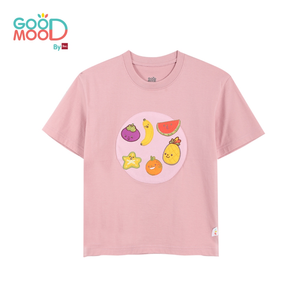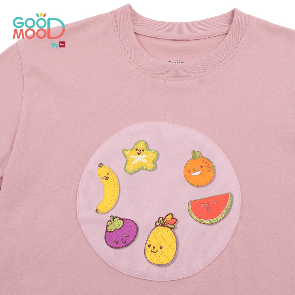 Good Mood by bsc เสื้อยืดคอกลม แขนสั้น สีชมพู + PATCHES ลายผลไม้ 6 ชิ้น สำหรับเด็กอายุ 6-7 ปี ผ้าคอตตอน