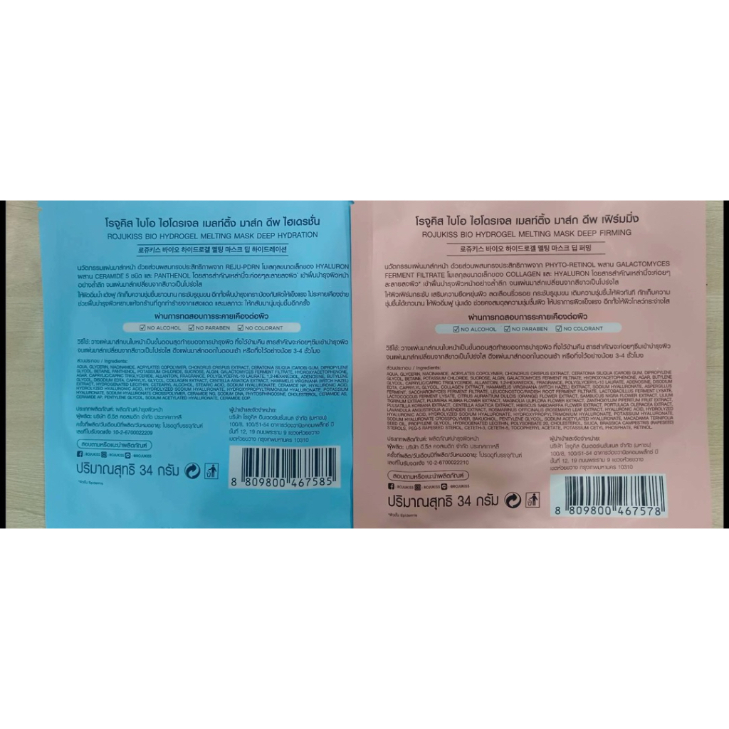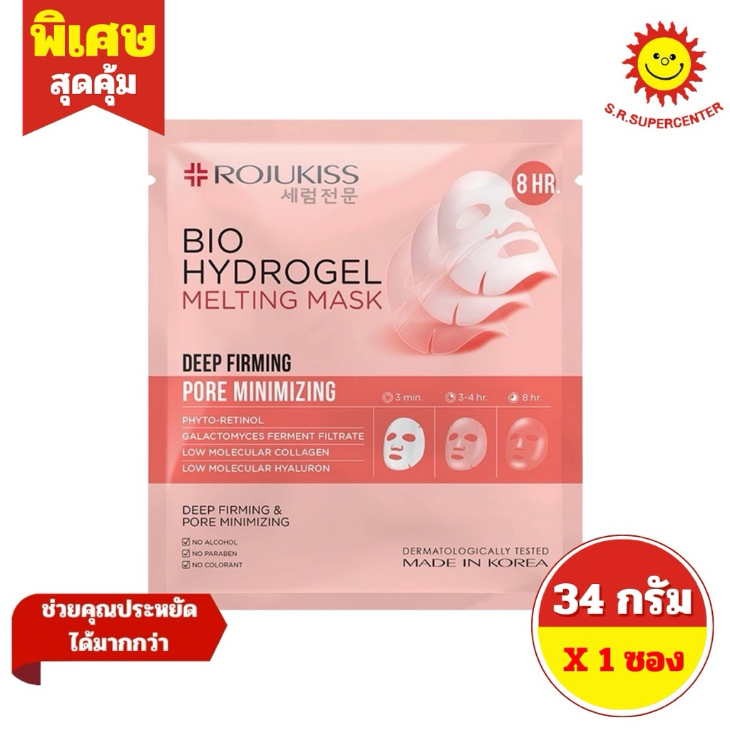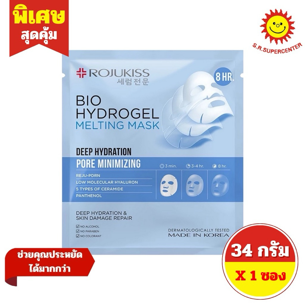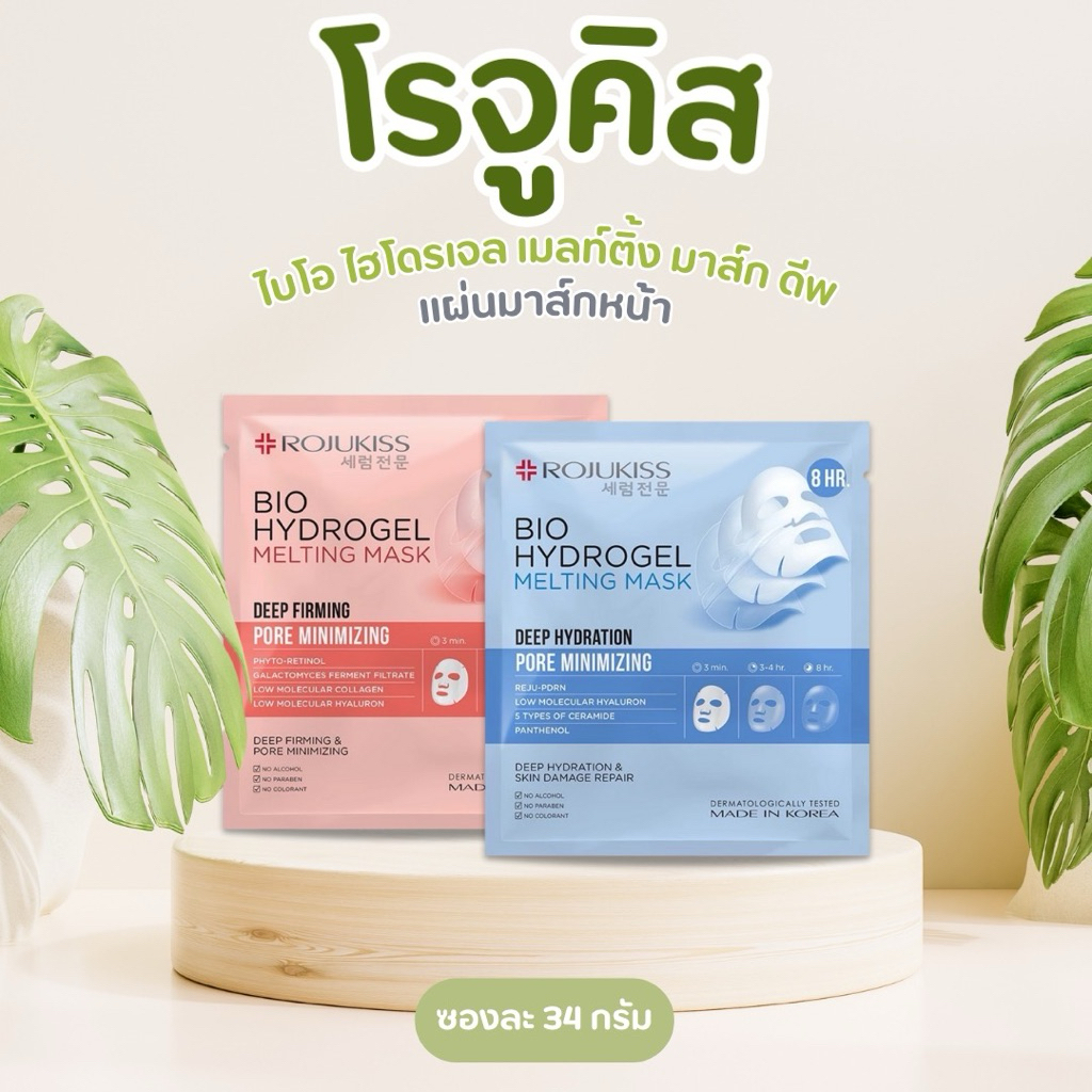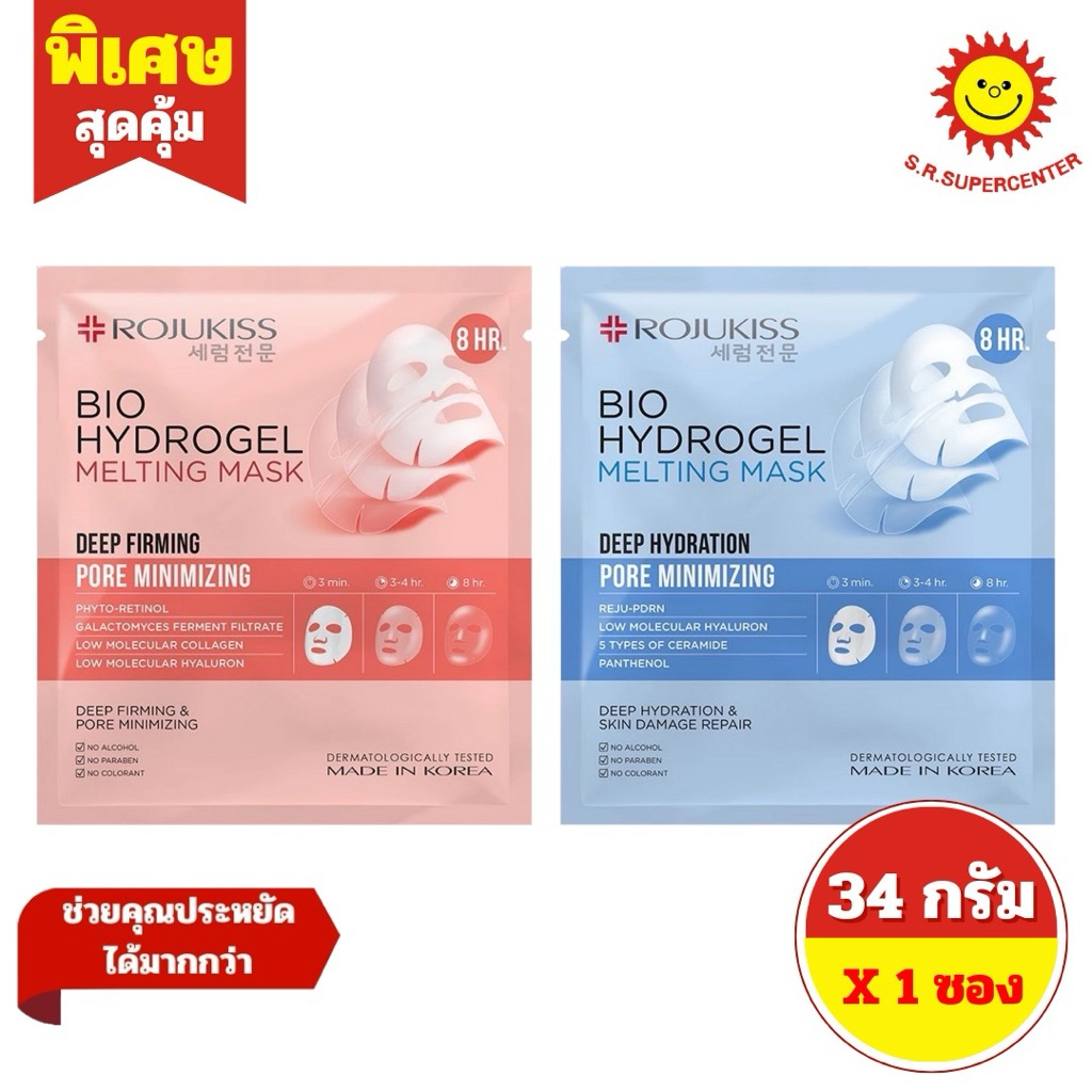 [ 1 ซอง ] Rojukiss โรจูคิส ไบโอ ไฮโดรเจล เมลท์ติ้ง มาส์ก ดีพ แผ่นมาส์กหน้า ขนาด 34 กรัม 2 สูตร