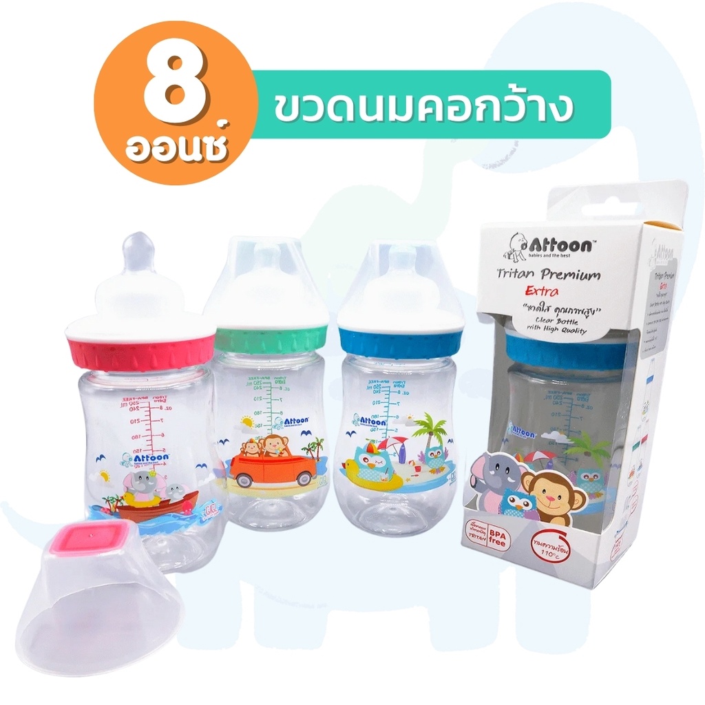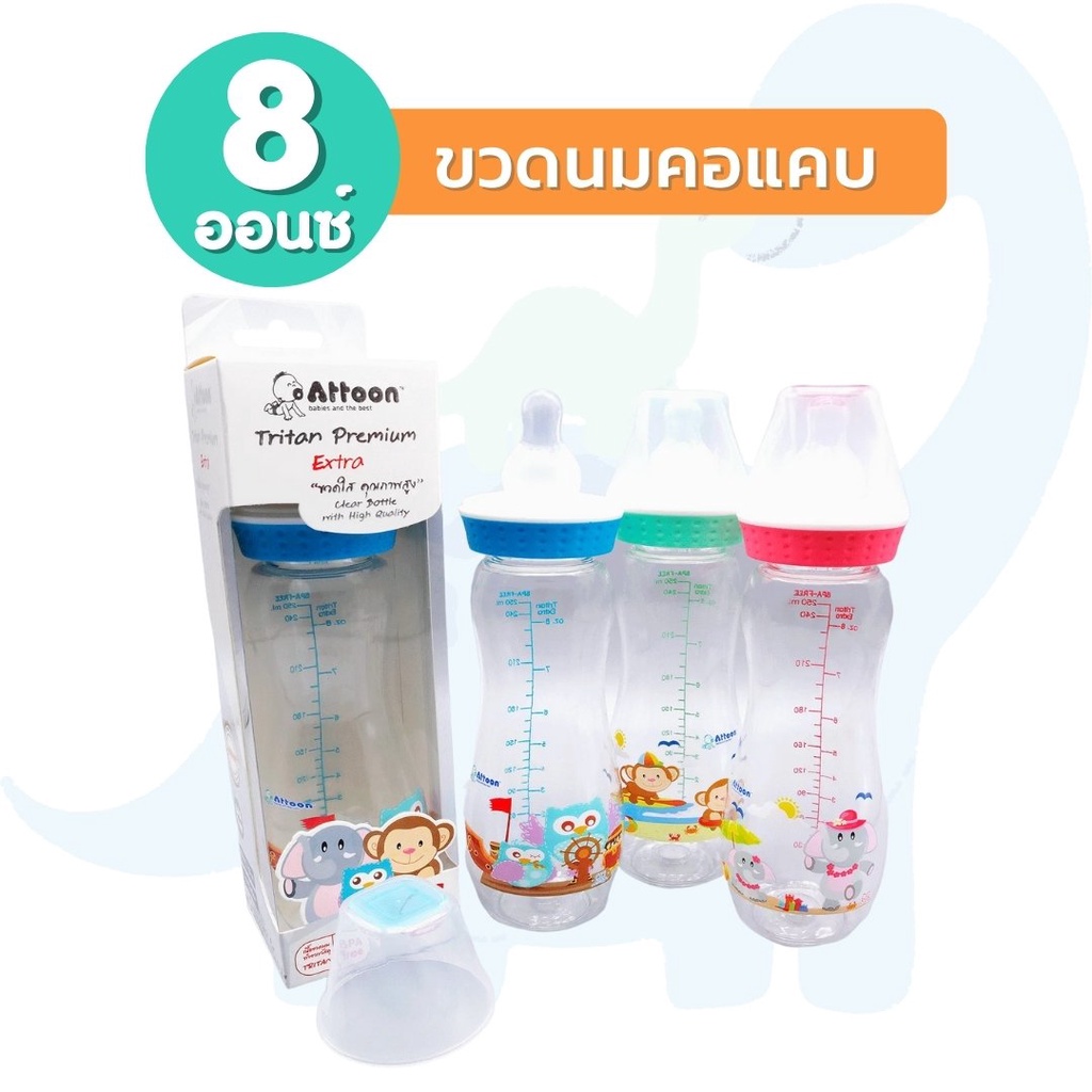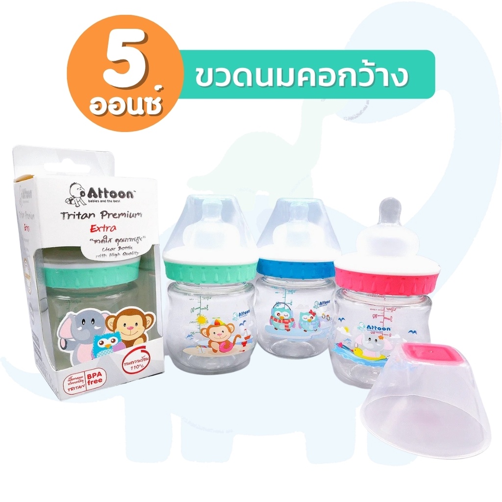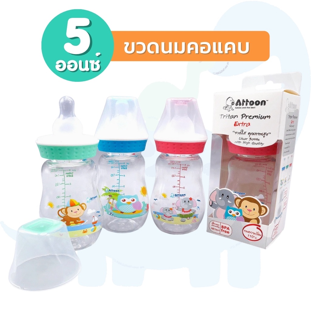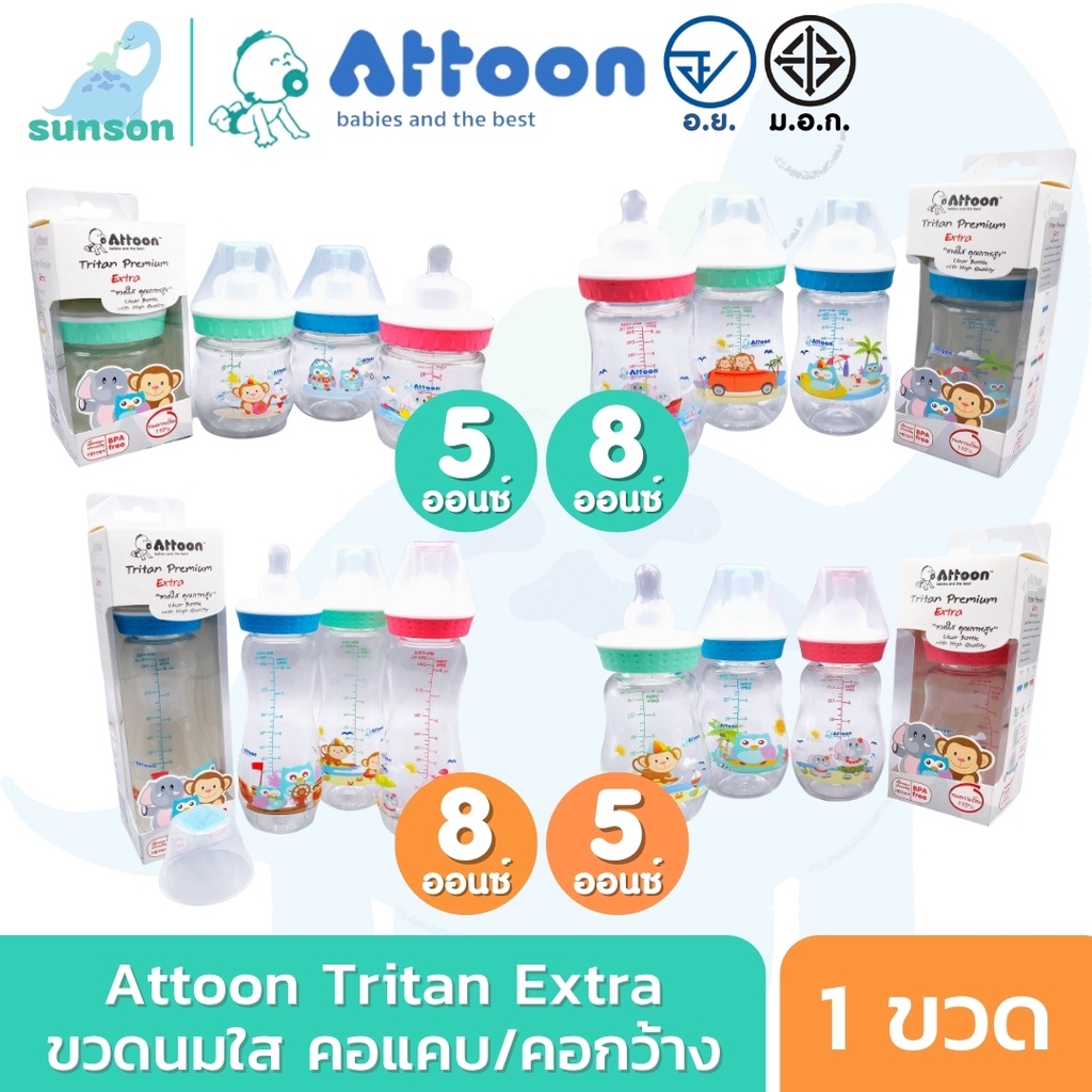 [แพ็ค 1 ขวด] Attoon Tritan Extra ขวดนมใส เนื้อไตรตัน แอทตูน ขวดนมคอแคบ ขวดนมคอกว้าง ( 5 / 8 ออนซ์ ) ขวดนม มาตรฐาน มอก.