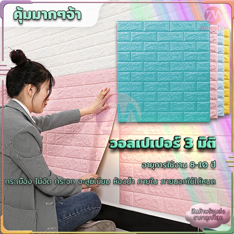 🔥ถูกสุด ลายอิฐ 3 มิติ🔥สติกเกอร์วอลเปเปอร์ สติ๊กเกอร์ติดผนัง 3D wallpaper วอลเปเปอร์ ติดผนัง วอลเปเปอร์ติดผนัง คุณภาพสูง
