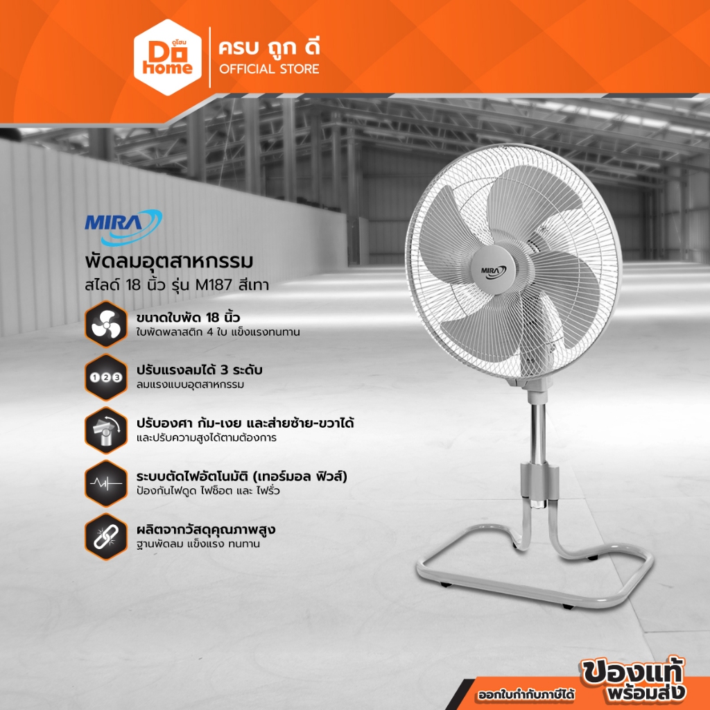 MIRA พัดลมอุตสาหกรรมสไลด์ 18 นิ้ว รุ่น M187 สีเทา (ไม่รวมประกอบ) |MC|