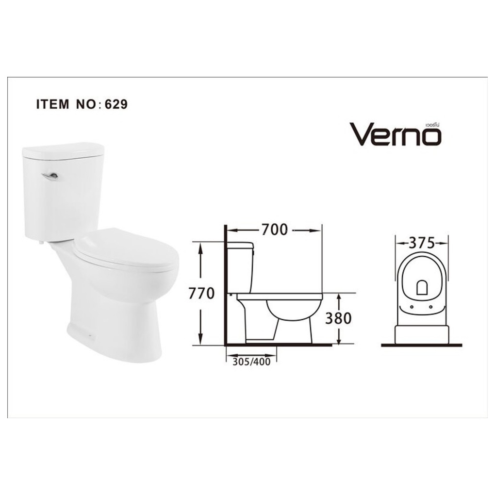 GlobalHouse Verno สุขภัณฑ์สองชิ้น แบบกดหน้า รุ่น จีโอ VN-629 สินค้าของแท้คุณภาพดี