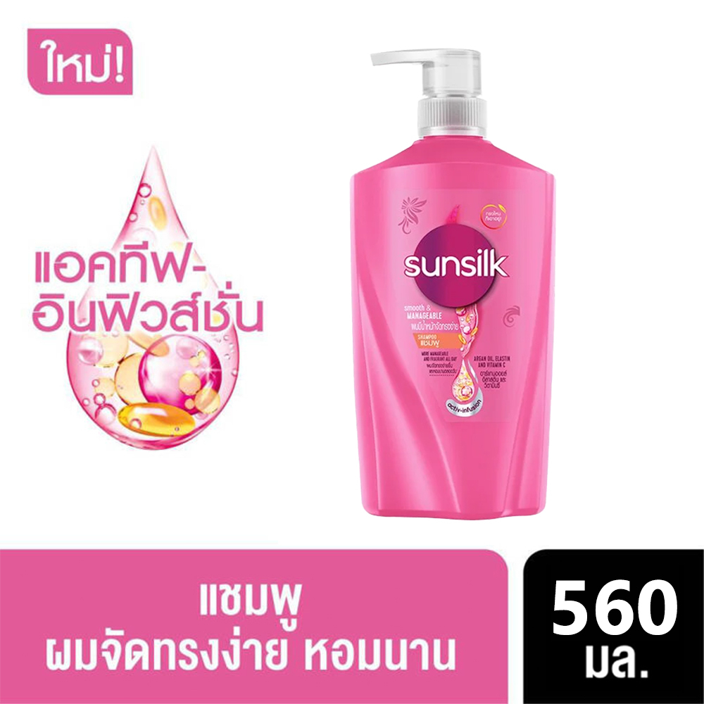 ซันซิล แชมพู สูตร ผมมีน้ำหนัก จัดทรงง่าย แชมพู 520 มล. SUNSILK SHAMPOO SMOOTH MANAGE PINK 520 ML