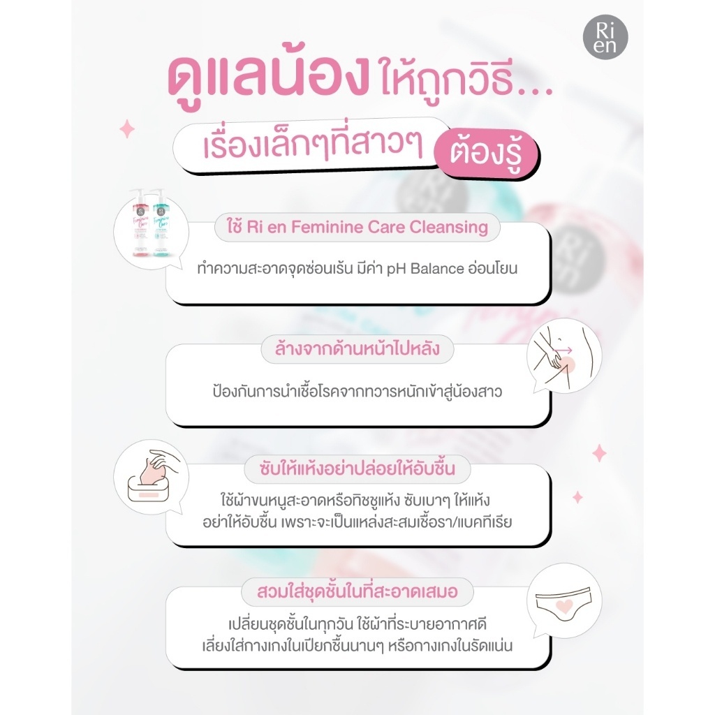 (กล่อง 6 ซอง) Ri en Feminine Care Cleansing ริเอ็น น้ำยาล้างจุดซ่อมเร้น สูตร Pure Perfect (20 ml.)