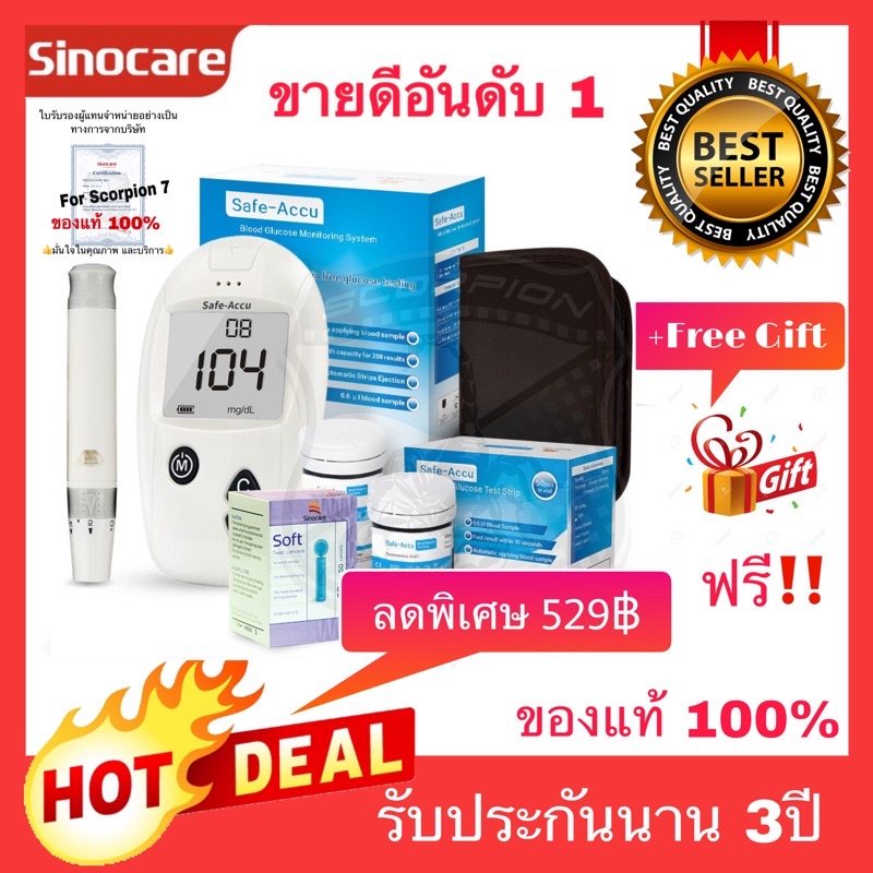 🔥ลด7วัน🔥 เครื่องวัดน้ำตาลในเลือด Sinocare Safe Accu ที่วัดน้ำตาลในเลือด เครื่องตรวจวัดน้ำตาล