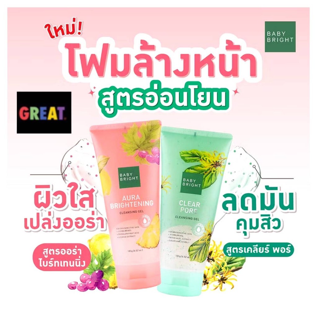 Baby Bright คลีนซิ่งเจล สูตรแพ้ง่าย【เจลล้างหน้า】Cleansing Gel Clear Pore & Aura Brightening 185g