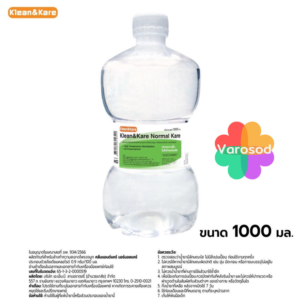 [ยกลัง 10 ขวด] น้ำเกลือ ดัมเบล Klean&Kare Normal Saline Solution ขนาด 1000Ml. คลีนแอนด์แคร์