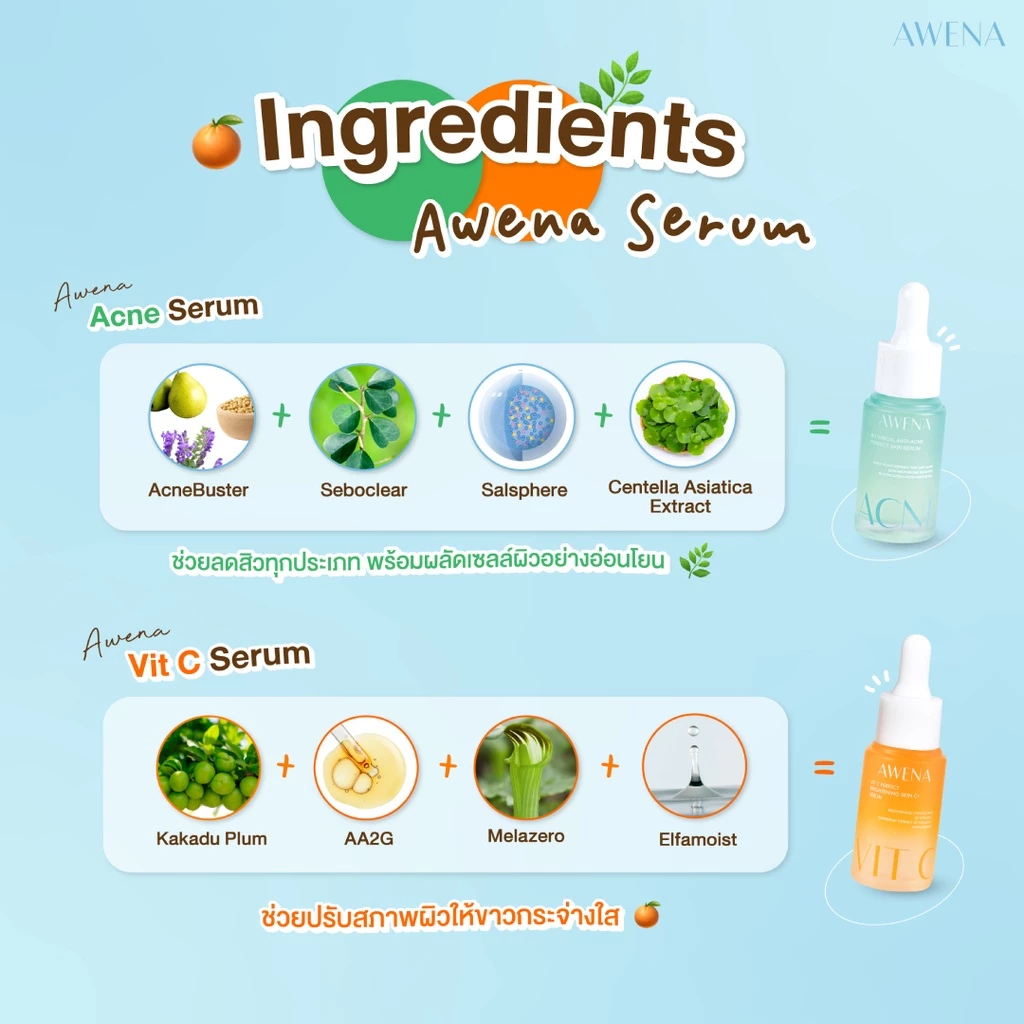 [1แถม1] Awena : 🍊 เซรั่มวิตซี 🍀 เซรั่มลดสิว เซรั่มหน้าใส ลดรอยดำ รอยแดงจากสิว จบปัญหาสิวซ้ำซาก ขนาด 15ml
