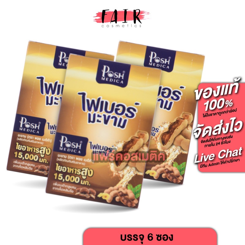 [3 กล่อง] ไฟเบอร์มะขาม พอช เมดิก้า PoshMedica Fiber [6 ซอง] ไฟเบอร์สูง [MC Plus แมค พลัส เดิม]
